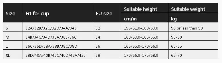 Размер: подходит для чашки европейского размера подходящий рост подходящий вес