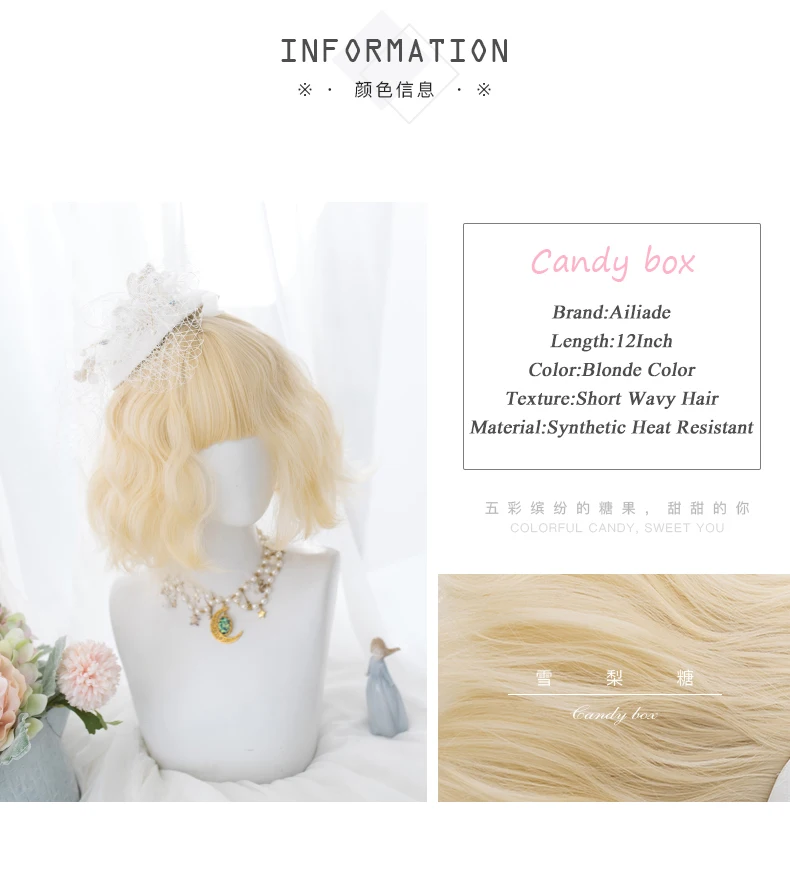 Бренд: Ailiade Длина: 12 дюймов Цвет: блонд, синий, розовый, красный, фиолетовый Текстура: короткий волнистый парик Упаковка: 1 парик + 1 парик Материал: синтетический термостойкий Примечание: 1. Что касается разницы в цвете продуктов, наши продукты являются реальными снимками, но из-за влияния монитора, оборудования для стрельбы и окружающей среды некоторые различия в цвете неизбежны. Фактический цвет зависит от фактического полученного предмета. 2. Что касается длины продукта, наш парик измеряется от верхней части головы до хвоста волос. Измеряется вручную, погрешность составляет около 1-5 см (завивка оказывает большее влияние на длину).