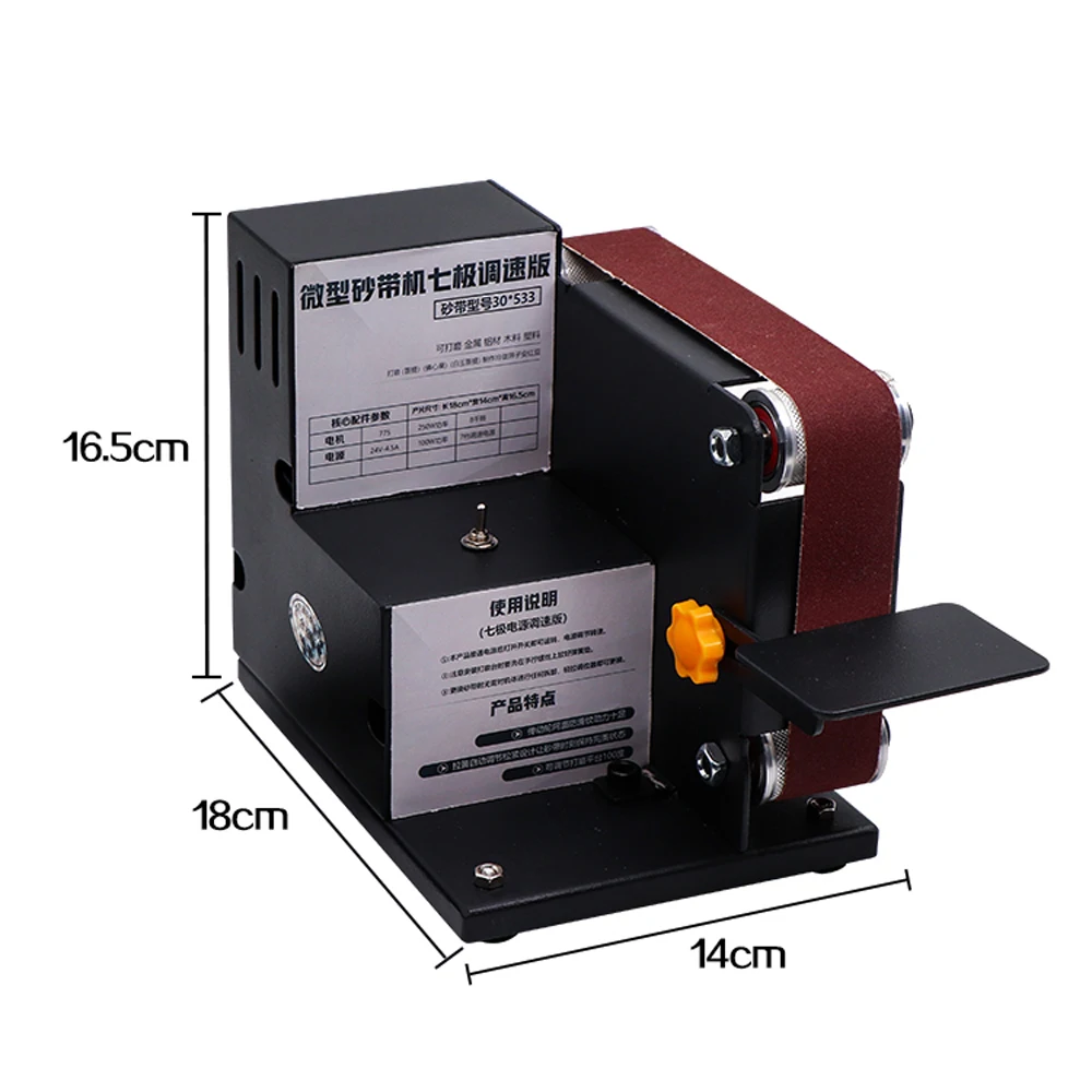 Это мини-ленточная машина с сильной мощностью, удобной работой и стабильной скоростью. Он может полировать металл, алюминий, дерево, пластик и так далее. Это ленточная машина, которая может использоваться в домашних условиях и в промышленности.