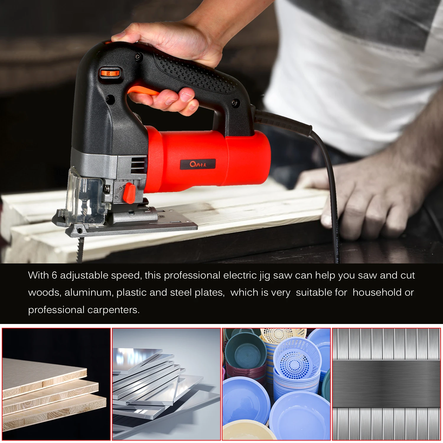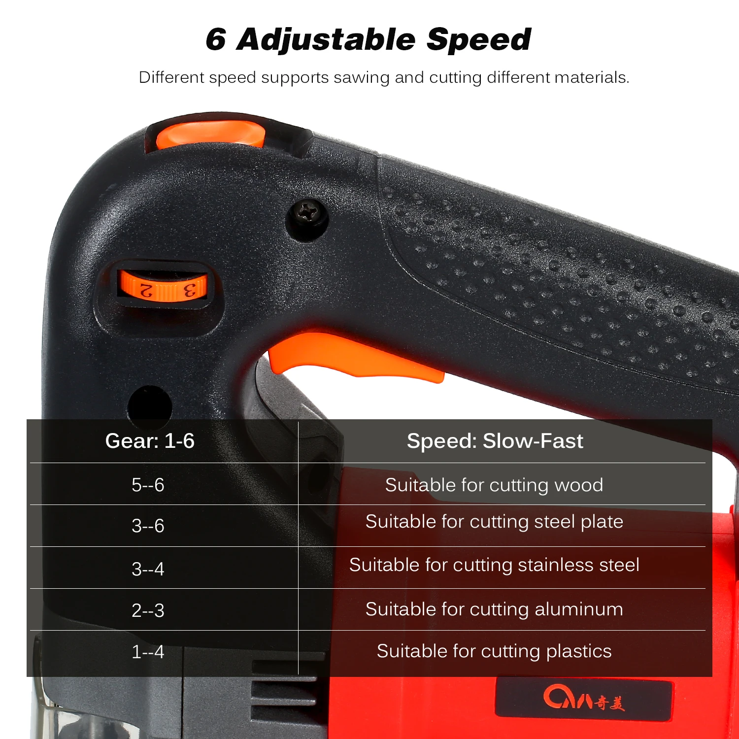 С 6 регулируемыми скоростями, эта профессиональная электрическая пила может помочь вам пилить и резать леса, алюминиевые, пластиковые и стальные пластины, которые очень подходят для домашних или профессиональных плотников.