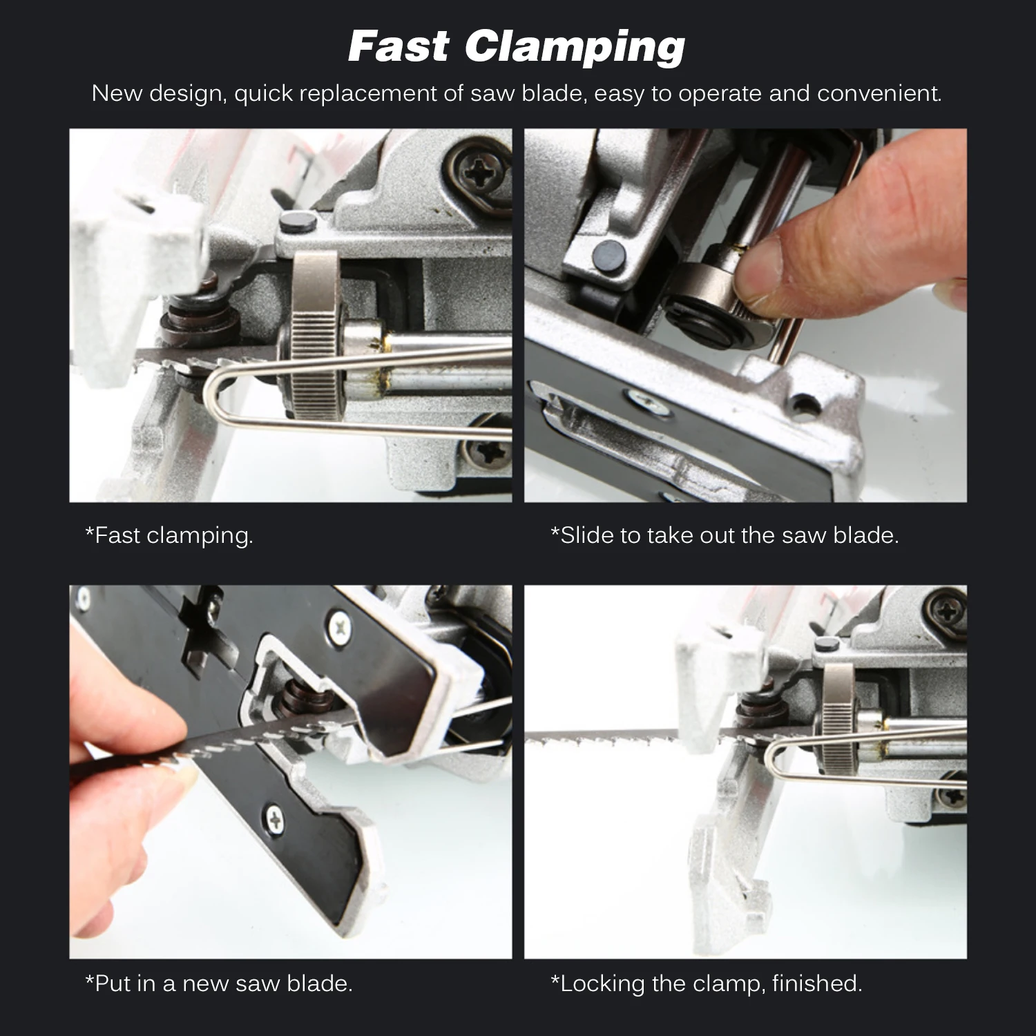 -Быстрое зажимание: новый дизайн, быстрая замена пряжки пильного диска, простота в эксплуатации и удобство.