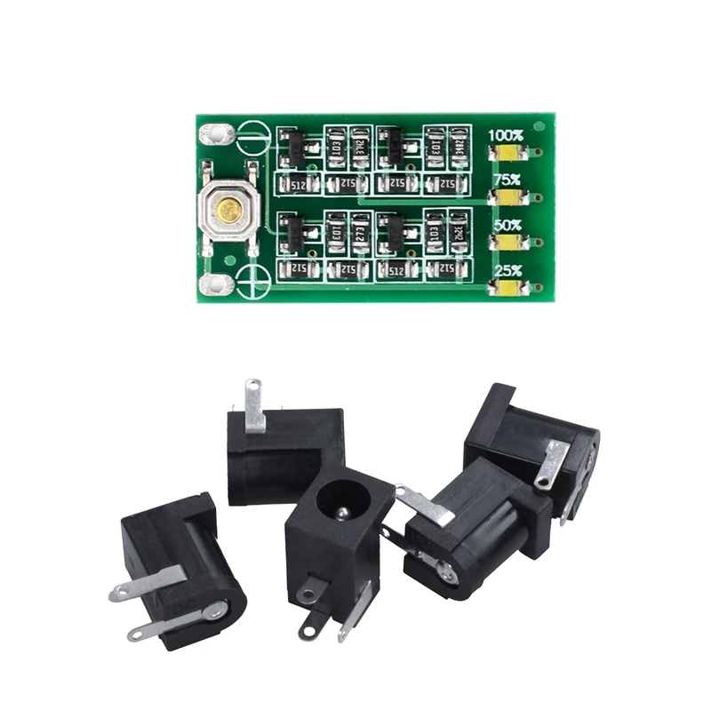 6 шт. аксессуары: 5 шт. разъем питания постоянного тока для монтажа на печатную плату и 1 шт. модуль индикатора емкости аккумулятора