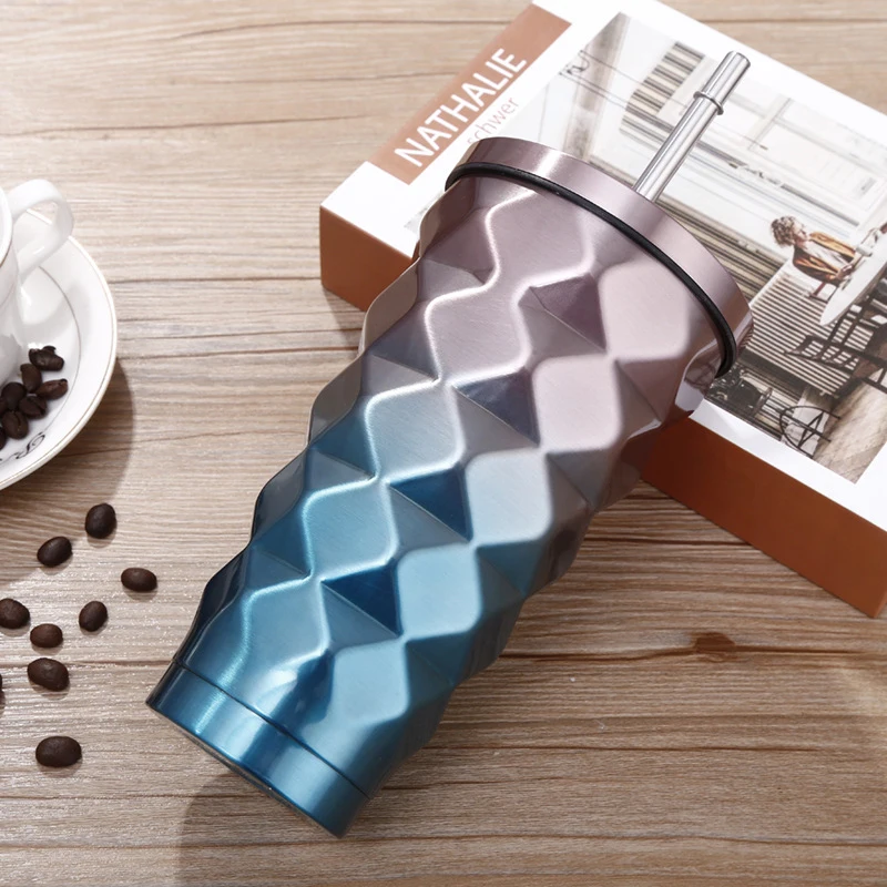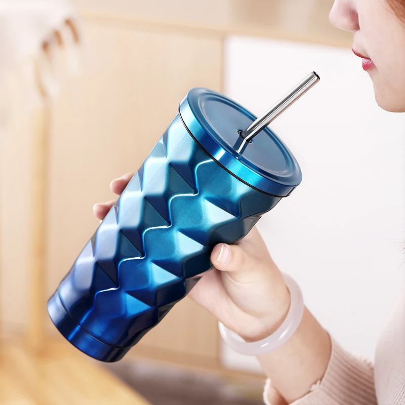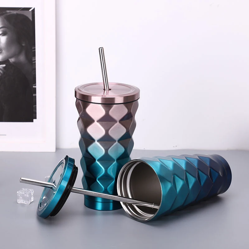 500 мл, термос из нержавеющей стали с двойным цветным бриллиантом, чашки с соломинкой, кофе, напиток, холодные термальные бутылки, Iso, Термокружка для воды