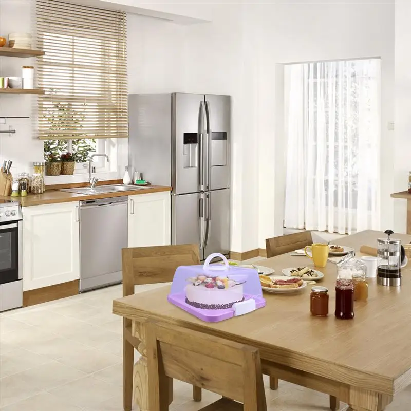 Это прозрачная коробка для торта. Подходит для 8 дюймового квадратного торта. Ручной дизайн делает его более портативным. Конструкция герметизации предотвращает утечку. Легко чистить. Изготовлен из экологически чистого материала, безопасный и прочный. Он может защитить и лучше хранить ваш торт ко дню рождения. Чехол также может использоваться для покрытия посуды.
