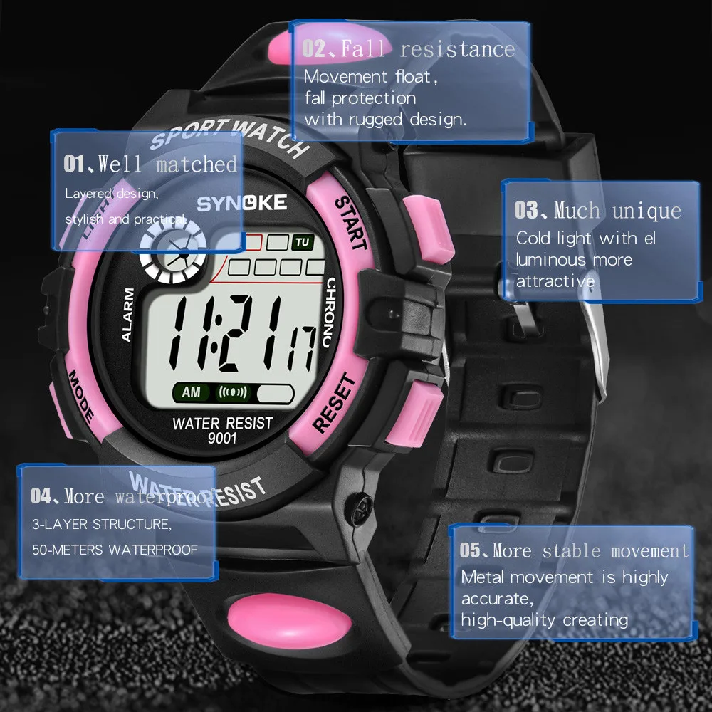 Студенческие спортивные многофункциональные водонепроницаемые красочные светящиеся электронные часы 30 м водонепроницаемые часы светодиодный цифровой двойной экшн 03