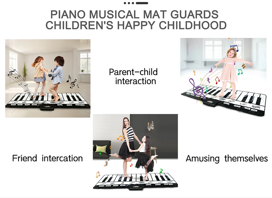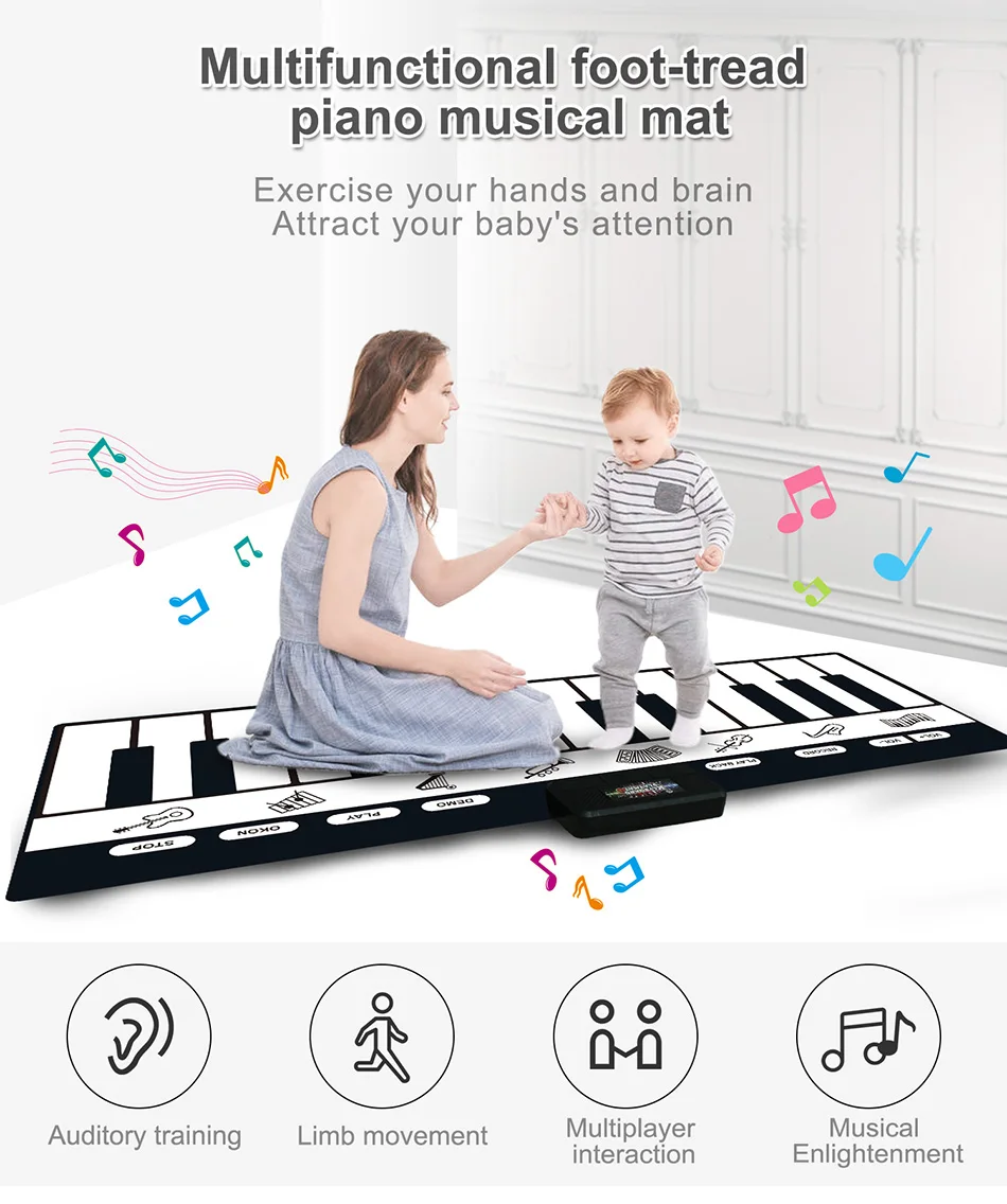 🔵Коврик для пианино изготовлен из мягкого и водонепроницаемого нетканого материала, безвкусный и нетоксичный. Высококачественные ткани не повредит детские руки и ноги. 🔵В задней части этого музыкальное одеяло используется нескользящий материал, чтобы дети были более безопасны при игре с ногами. 🔵Вокруг него имеется плотная вязка, которая используется для более длительного времени.