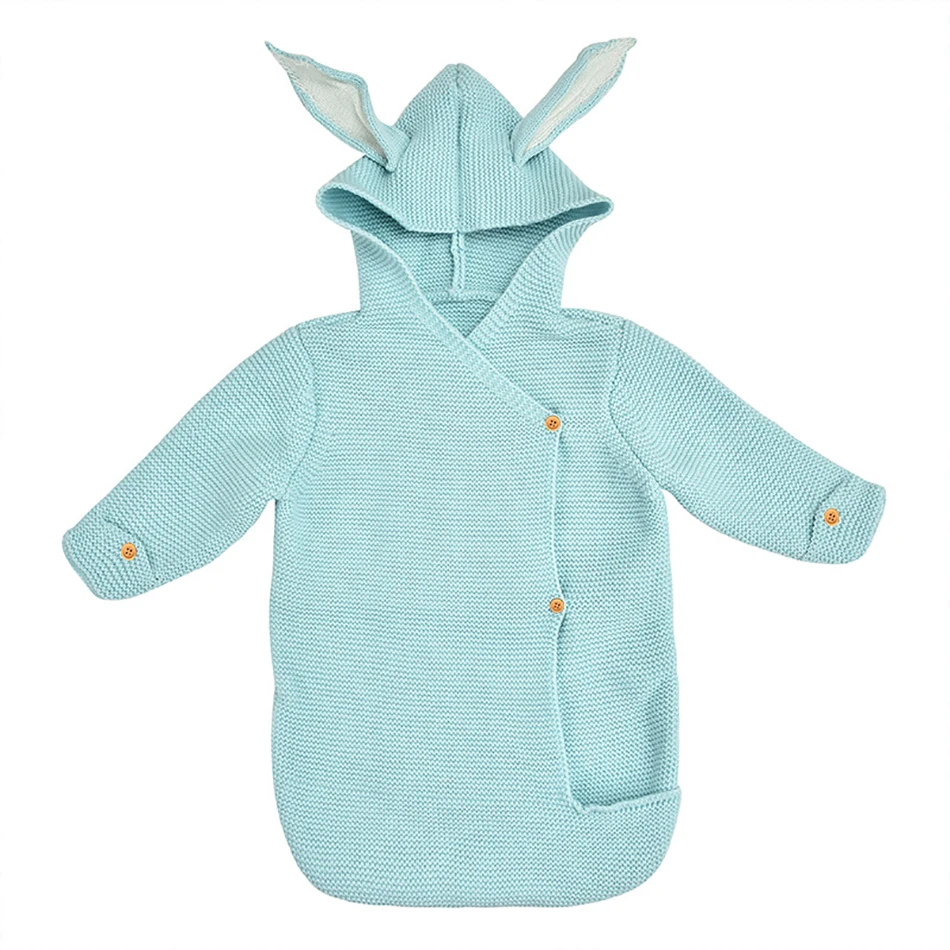 Теплые спальные мешки для новорожденных, конверты для новорожденных, коляска, кроличьи ушки, вязаное шерстяное Пеленальное Одеяло, вязаные спальные мешки для новорожденных