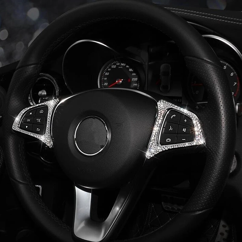 Автомобильная рамка для кнопки рулевого колеса, блестящая наклейка для Mercedes-Benz C Class GLA GLC CLA Class W205