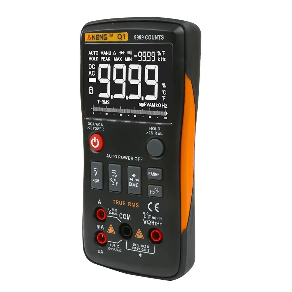 ANENG Q1 True-RMS цифровой мультиметр Кнопка 9999 отсчетов с аналоговым гистограммой AC/DC напряжение тока ОмАмперметр
