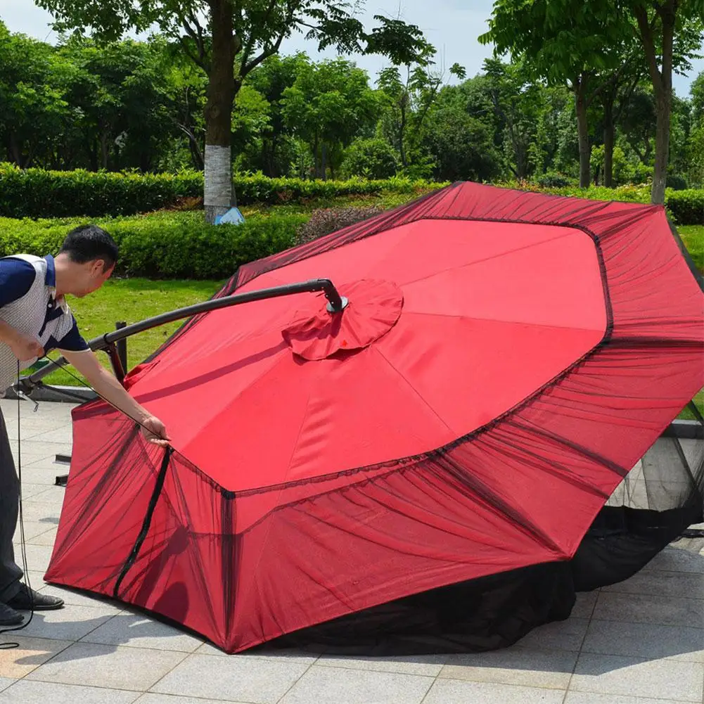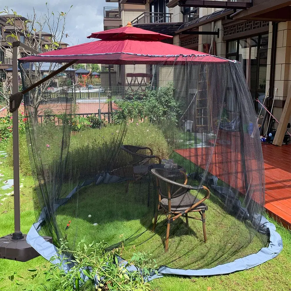 2. Регулируемая высота: шнурок в верхней части сетки можно регулировать по размеру, а размер москитной сетки составляет около 335 см (диаметр) * 230 см/131,89*90,55 дюйма (высота) подходит для зонтов диаметром 10-11 футов.