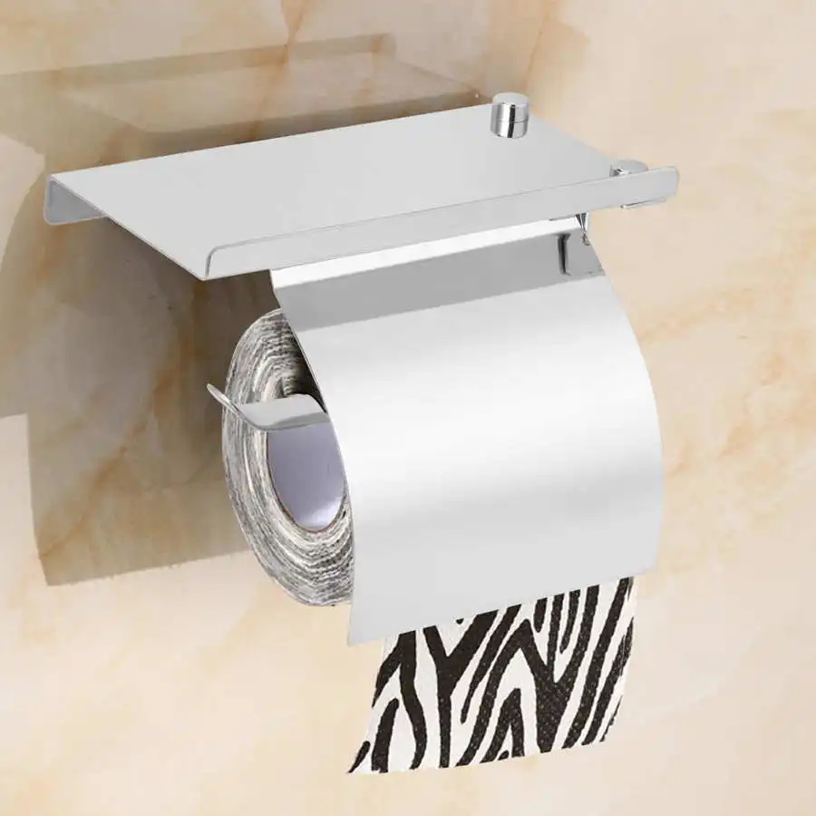 Настенный туалетный рулон из нержавеющей стали для ванной комнаты, бумажный держатель для хранения салфеток с полкой для телефона