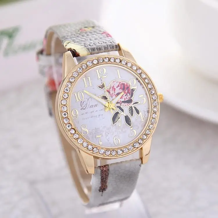 Модные часы с узором розы, повседневные женские часы с граффити, кожаный ремешок, кварцевые часы с кристаллами, женские часы, Reloj Mujer