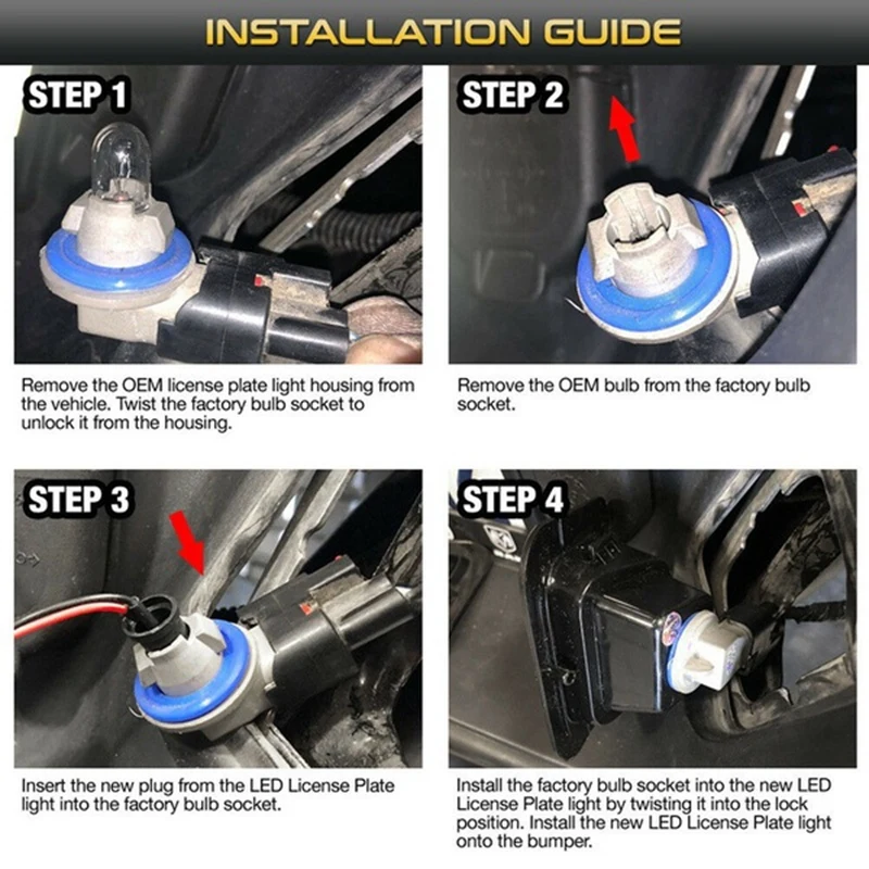 Шаг ⑤-просто поверните гнездо по часовой стрелке в светодиодный светильник номерного знака и переустановите светильник на бампер. Нанесите давление до тех пор, пока он полностью не сядет.