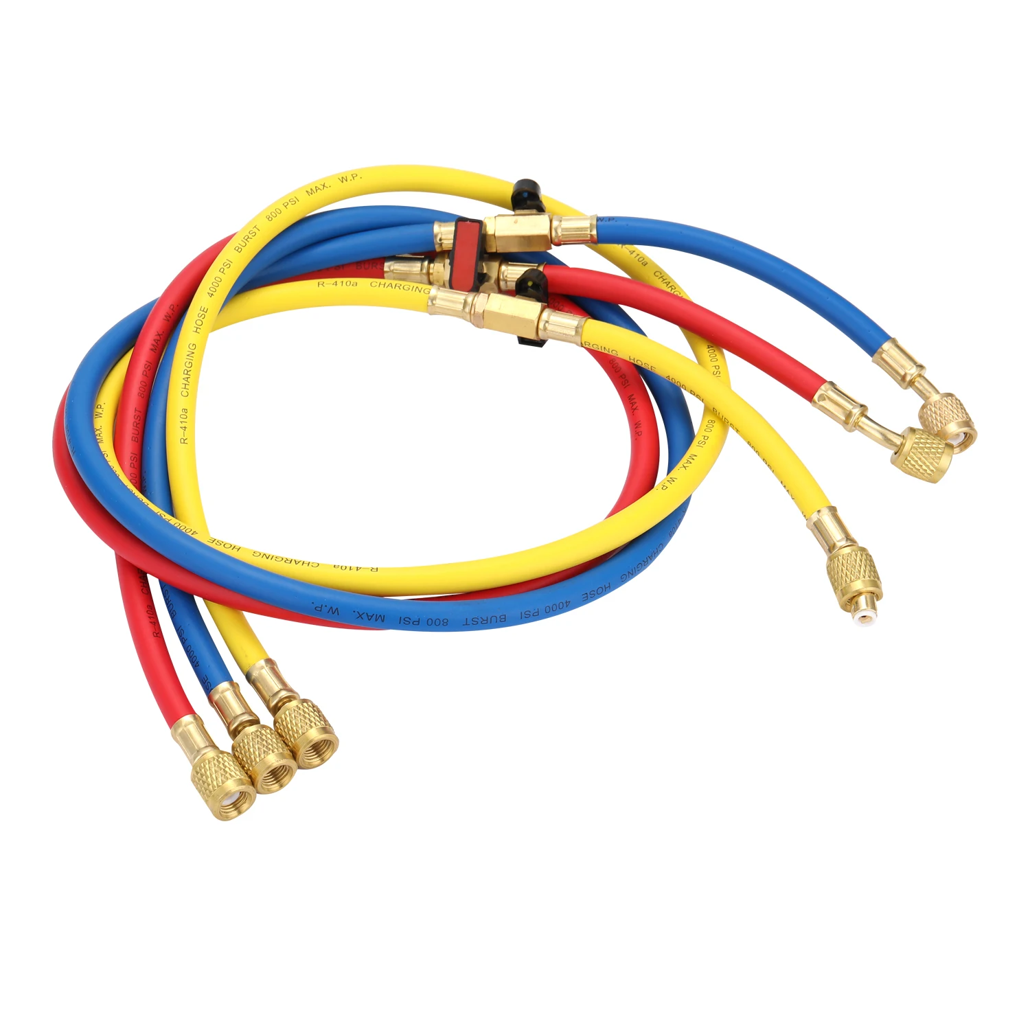 Это своего рода качественный охлаждающий шланг для подзарядки и шаровые краны, изготовленные из качественного материала, долговечного, прочного уплотнения, с хорошей прочностью и безопасностью. Красный, синий и желтый, 3 вида цветов шланги 50 "(1,27 м) и все в комплекте с компактным шаровым клапаном и быстрозатягивающейся гайкой для затягивания пальцев на каждом шланге. Поддержка 800 PSI рабочего давления и 4000 PSI разрыва давления, идеально подходит для стандартных хладагентов R410A. Вы можете попробовать.