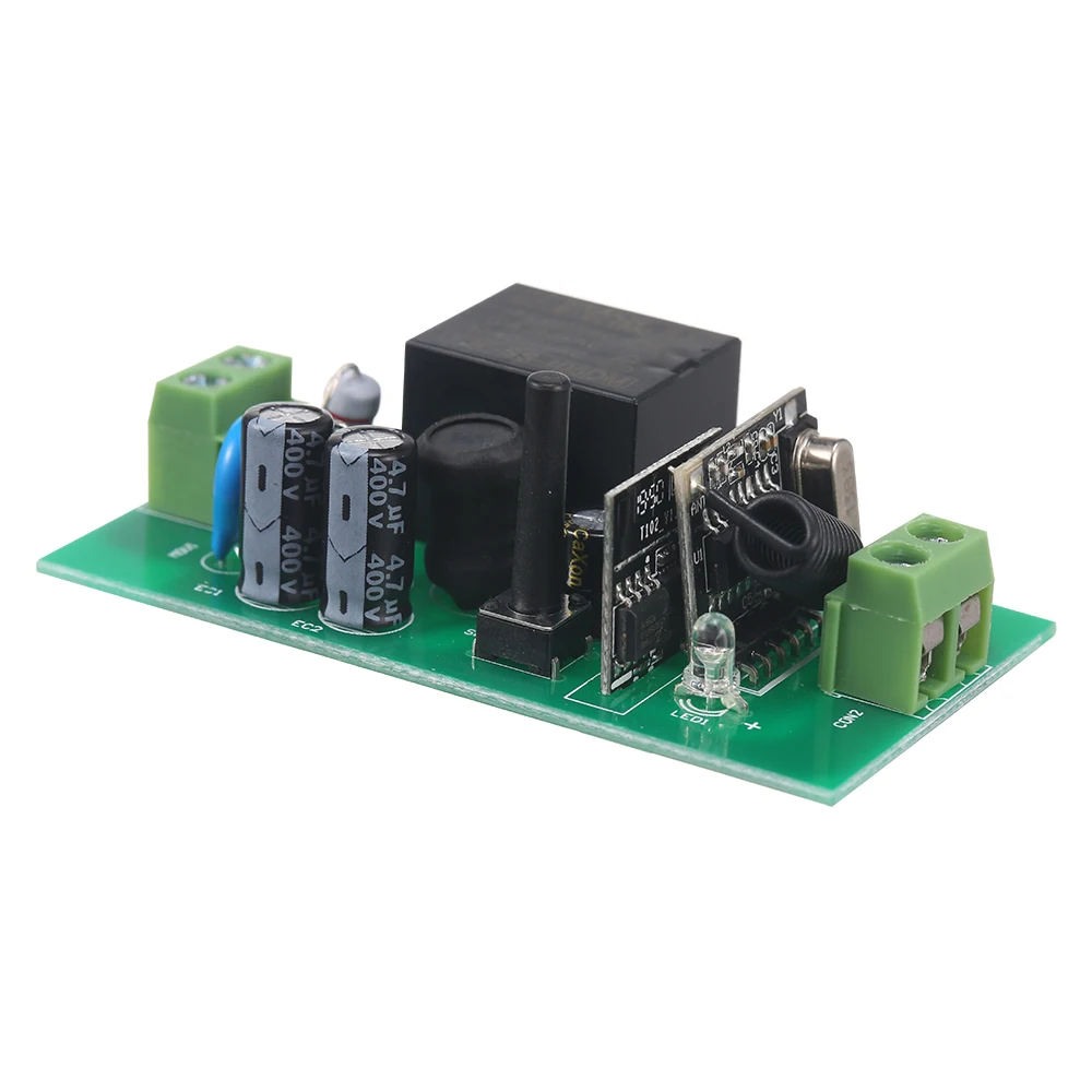 Поддерживает управление на радиочастотном пульте 433 МГц. После успешного обучения кодам с дистанционным радиочастотным пультом 433 МГц, радиочастотный переключатель может быть включен/выключен дистанционным управлением в помещении.