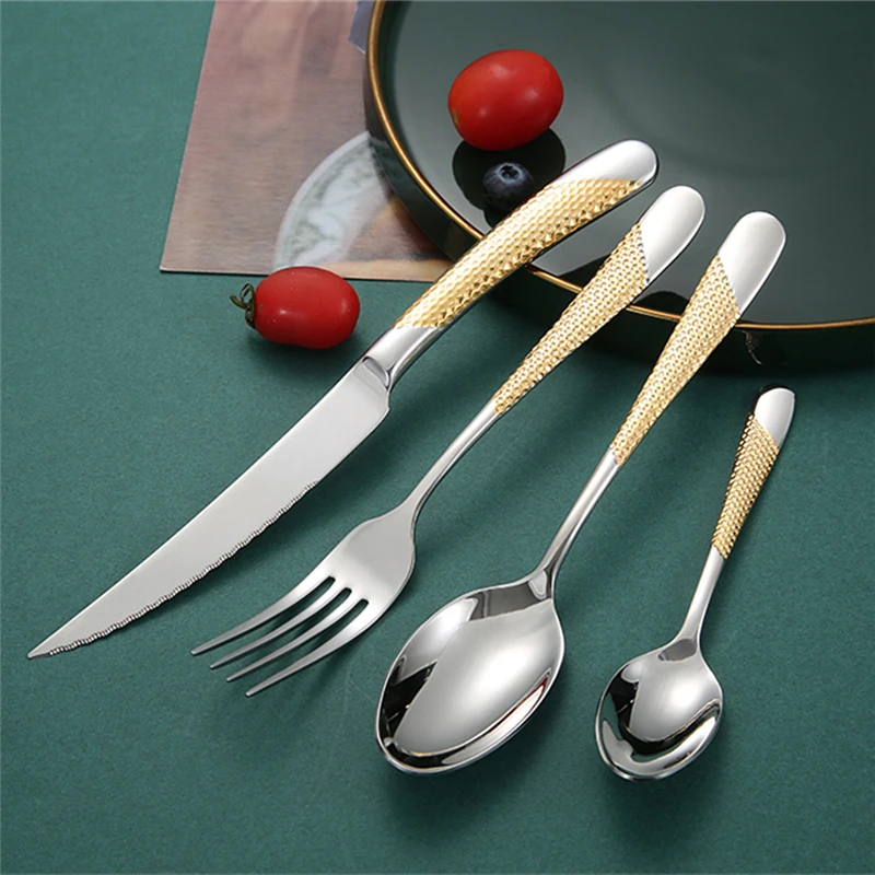 Характеристики: Материал: качественная нержавеющая сталь 304 Преимущество: хорошая зеркальная полировка поверхности Содержание продукта: Всего 24 штуки (6 столовых ножей + 6 столовых ложек + 6 столовых вилок + 6 чайных ложек, по 6 штук)