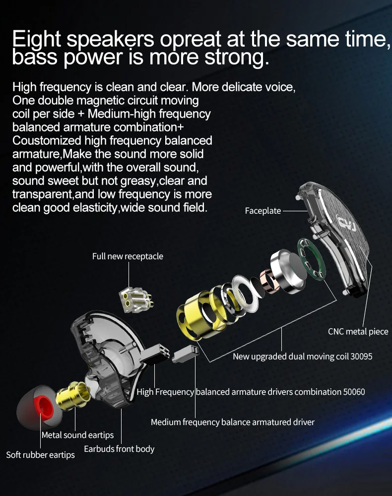 16. Блок драйвера: 1DD + 3BA Гибридный блок драйвера (10 мм двойной Магнитный контур динамический привод + 1 Промежуточная частота сбалансированная арматура + 2 высокочастотная сбалансированная арматура)