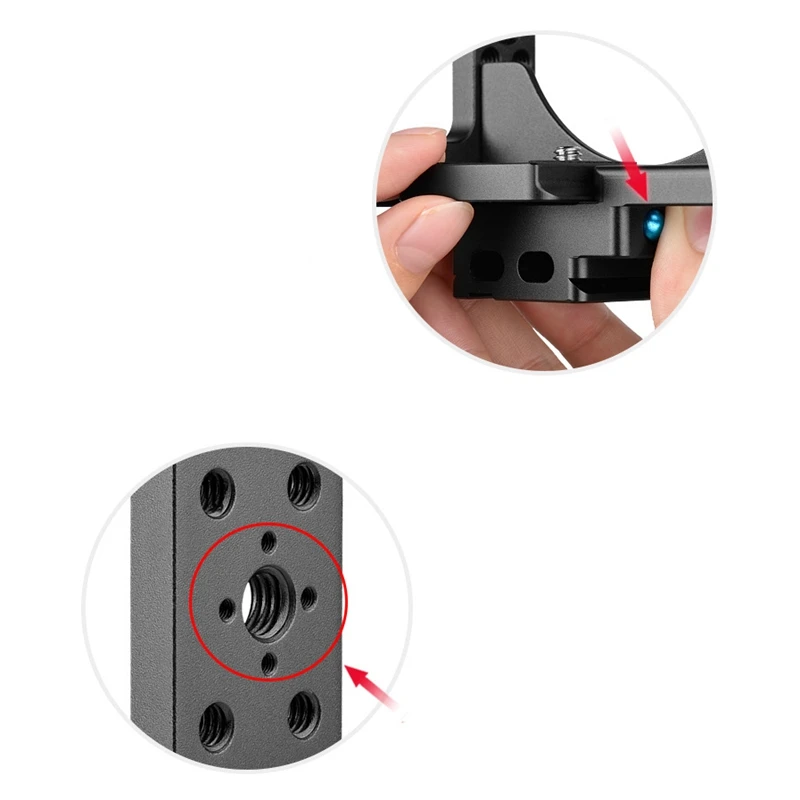 Резьбовые отверстия 1/4 и 3/8 предусмотрены на ручке и клетке для облегчения установки аксессуаров, а различные профессиональные комплекты для стрельбы могут быть установлены в сотрудничестве с базой.