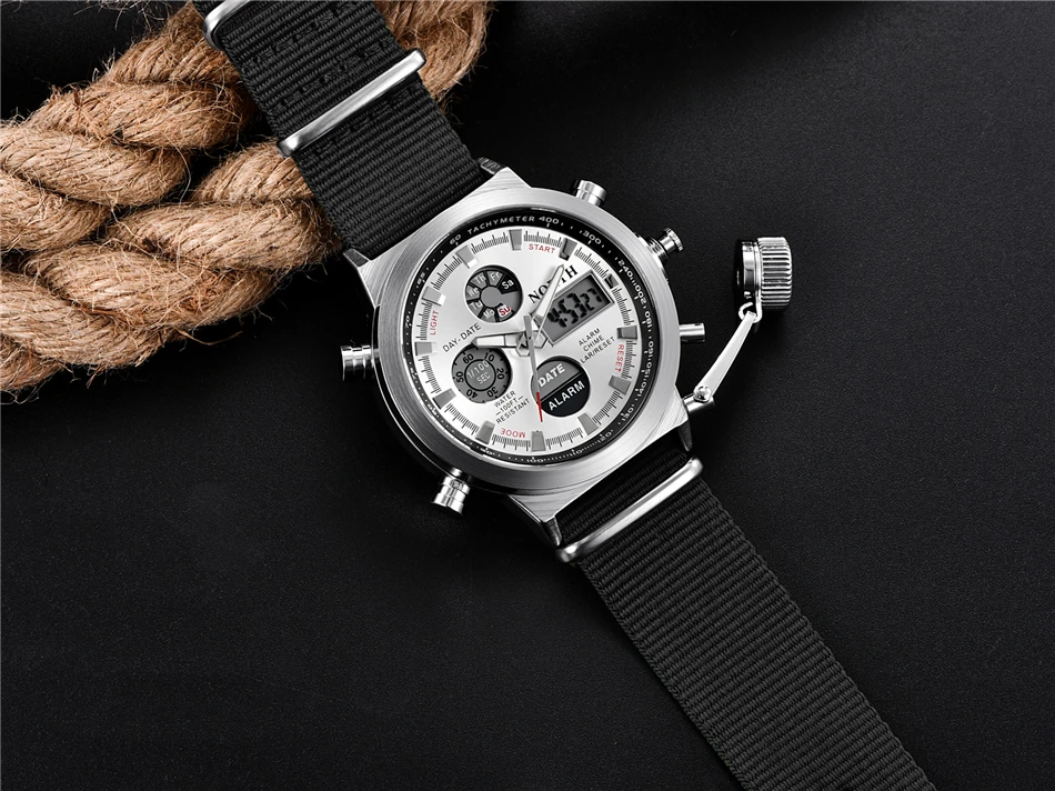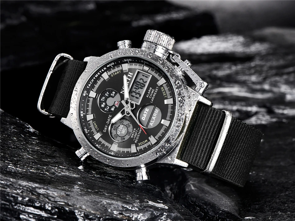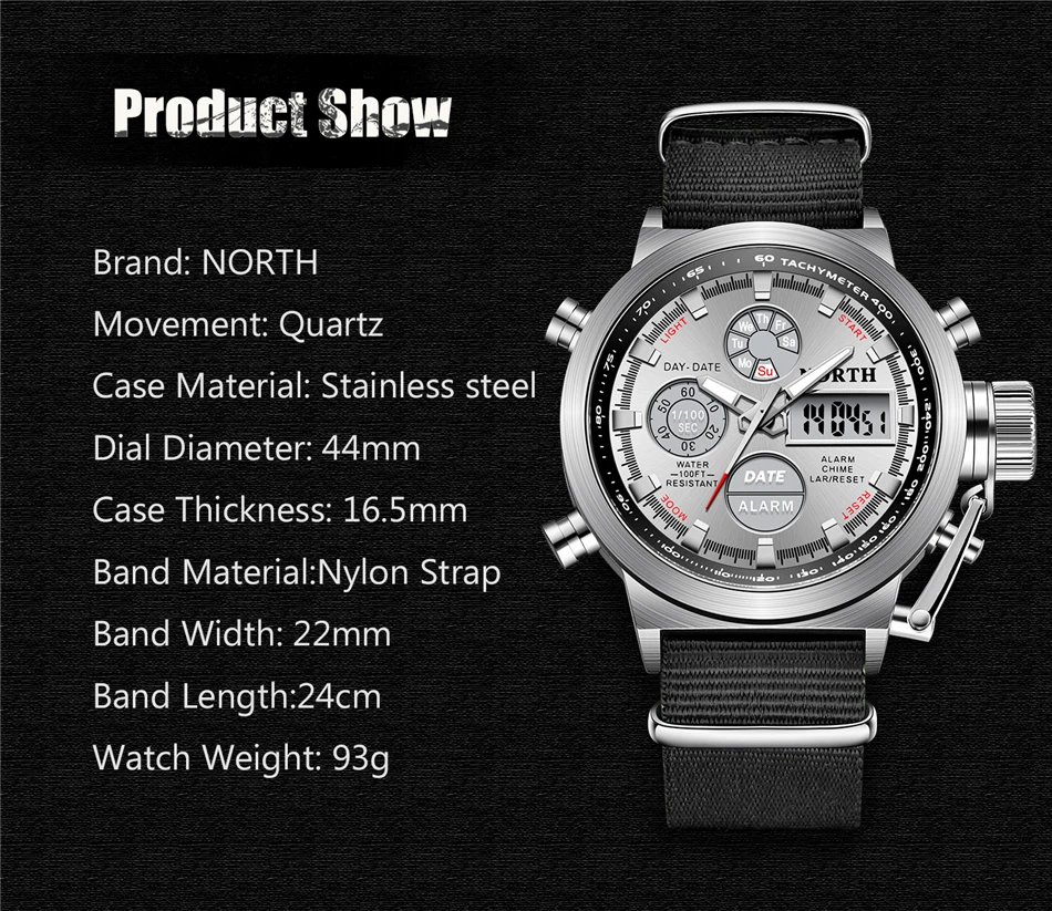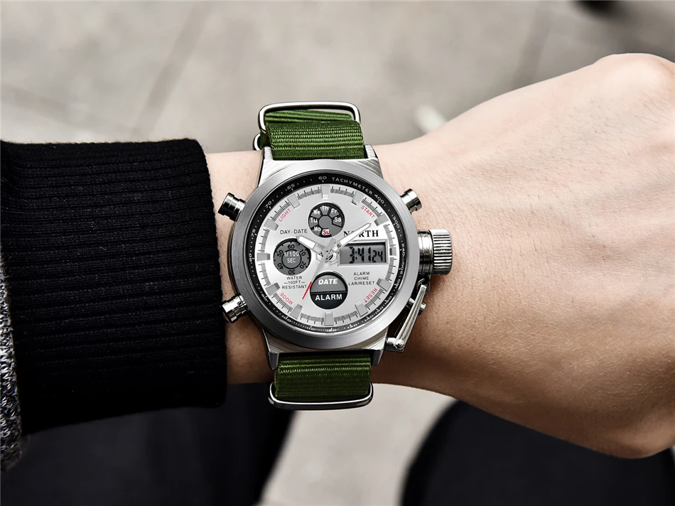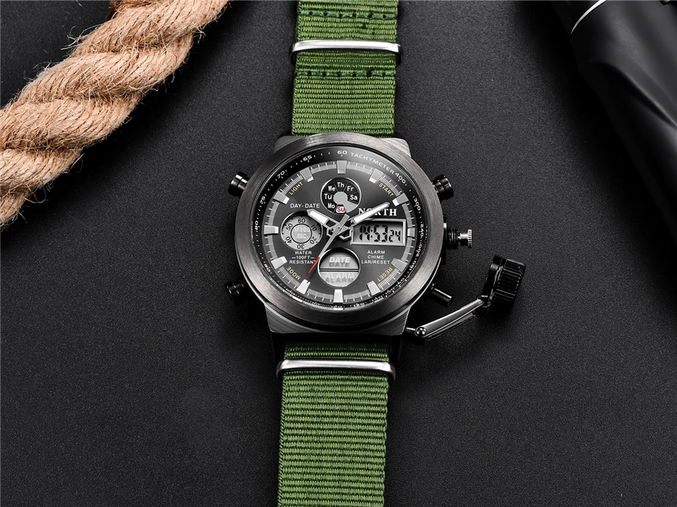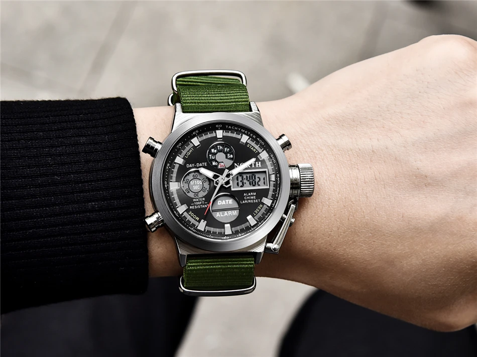 1x100% NORTH абсолютно новый 1 x аналоговый и цифровой дисплей с будильником и EL Blue Function Watch