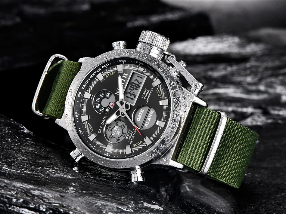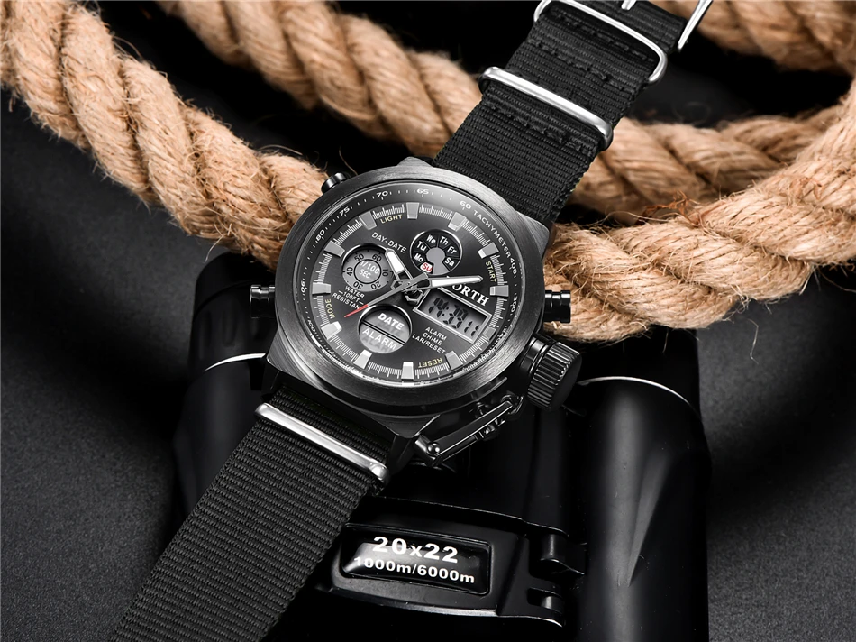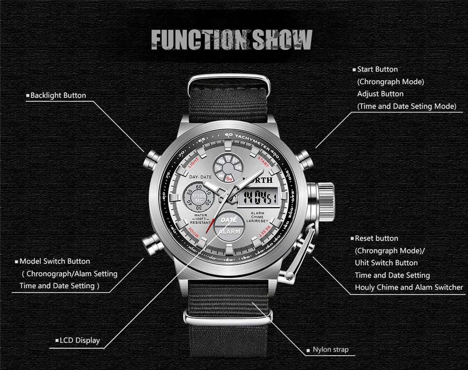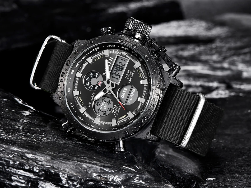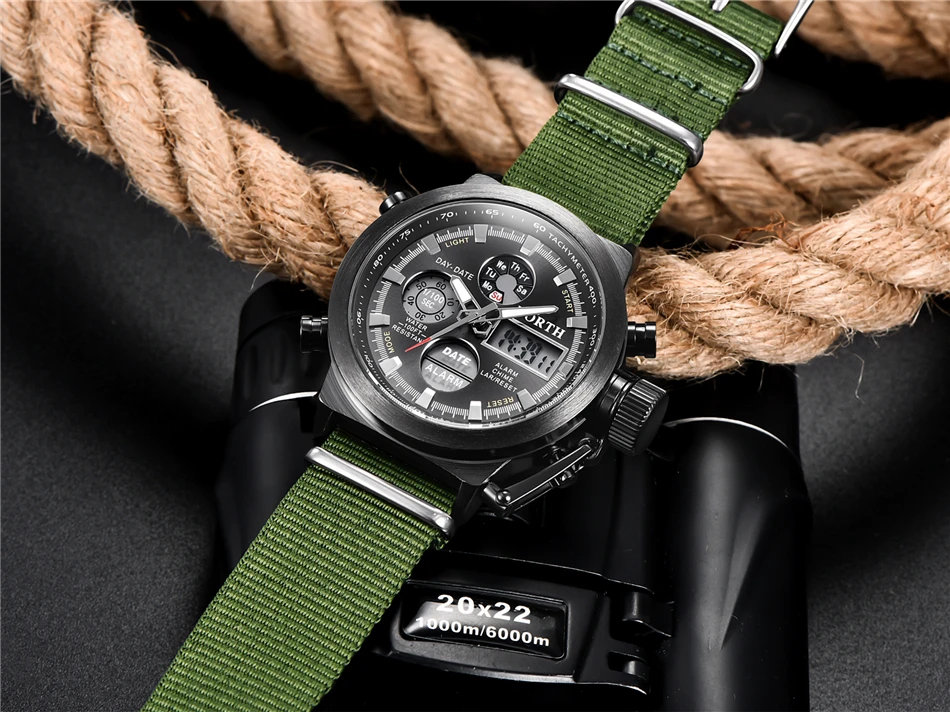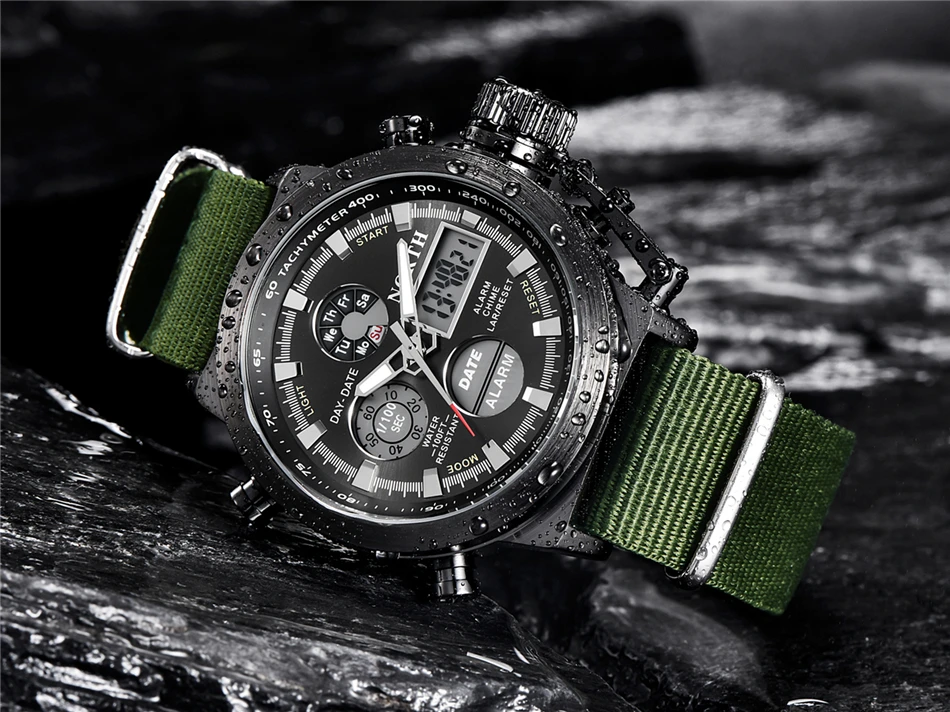 1x100% NORTH абсолютно новый 1 x аналоговый и цифровой дисплей с будильником и EL Blue Function Watch