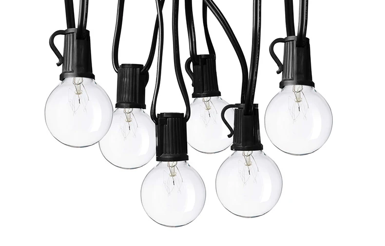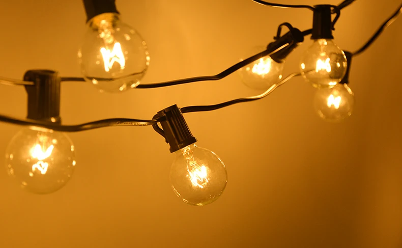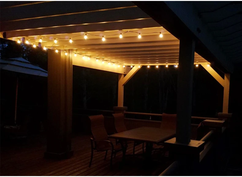 Оснащенный 25 светодиодными лампочками-светильниками E12, этот струнный светильник G40 светится ярко-желтым светом на задних дворах, беседках, садах, беседках, палубах, городских крышах, свадеб, вечеринках, день рождения, посиделки мгновенно загораются в романтическом, но праздничном стиле.