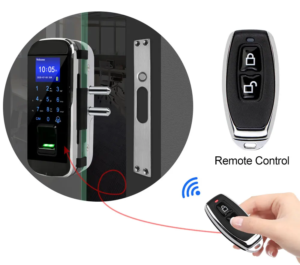 Оснащенный пультом дистанционного управления, вы можете разблокировать дверь на дальнем расстоянии от двери. Расстояние не более 15 метров.