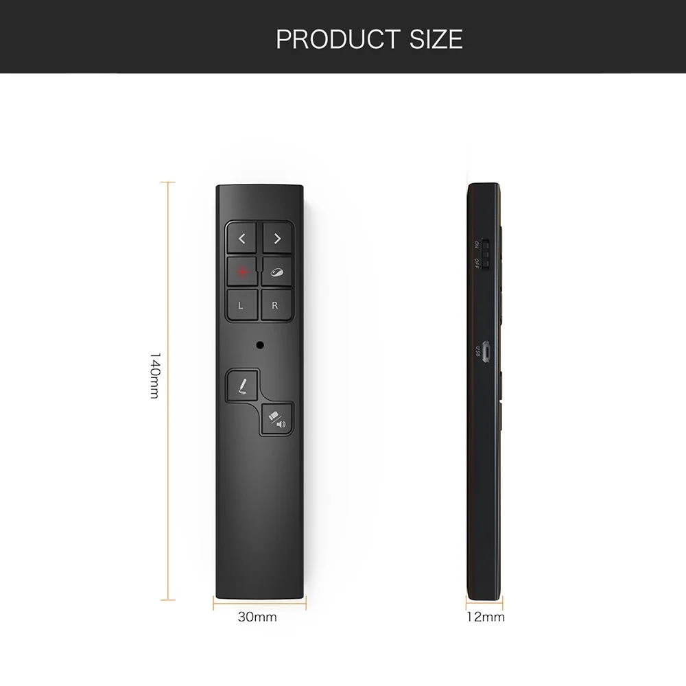 Описание: Идеальный инструмент для нескольких случаев, включая речь, обучение, встречи и работу. Комбинированная Основная функция: лазерная указка, мышь, отметка, страница вверх/вниз, полный/Темный экран, регулятор громкости. Особенности: С помощью мультимедийных клавиш вы можете гибко управлять им в руке при серфинге в Интернете, просмотре телевизора, прослушивании музыки и воспроизведении. Сильная совместимость с несколькими устройствами: ноутбуком, настольным компьютером, смарт-телевизором, проектором, верхней игровой коробкой и т. д. Технология GHz RF обеспечивает стабильную передачу, точную локализацию и отличную защиту от помех. Стереоскопическая линия на спине усиливает противоскользящее свойство и рассеивание тепла. Обычная сухая батарея с емкостью батареи 300 мАч, долгим сроком службы батареи и простой заменой. Дизайн с гуманным внешним видом дает вам отличное и удобное ощущение. Беспроводной диапазон до 30 м Поддерживает подключи и работай. Параметры: Название товара: беспроводной ведущий Радиочастота: ГГц Лазерный луч: лазер 3A Выходная мощность: <5 мВт Лазерное расстояние: 200 м Длина лазерной волны: нм (красный) Рабочее напряжение: 3,6 V Ток сна: <10uA Вес: прибл. 30,8 г Диаметр: около 140*30*12 мм Посылка Вес: Approx.118G Размер посылка: 160*90*25 мм Предупреждение системы безопасности: Не бросайте его в огонь или воду, потому что продукт включен в литиевый аккумулятор. Лазерная указка не светит в глазах человека. Не давайте его детям как игрушку. Посылка Содержание: 1x wireless presenter 1x USB приемник 1x микро USB кабель 1x Руководство пользователя