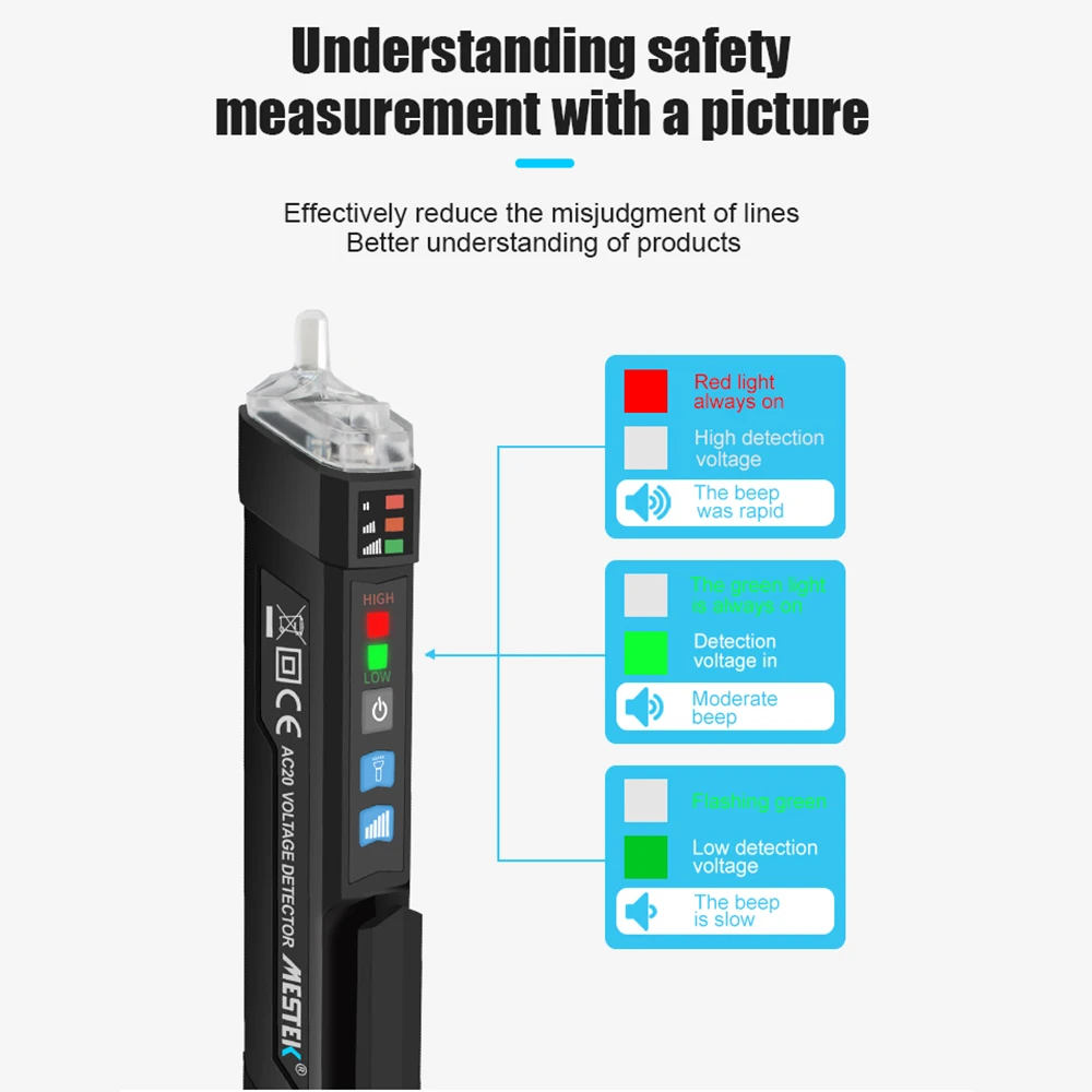 Бесконтактный Тестер Напряжения переменного тока в форме ручки может обнаруживать напряжение переменного тока в 12V ~ 1000V или 48V ~ 1000V, светильник весит для портативного ношения и удобен в эксплуатации.
