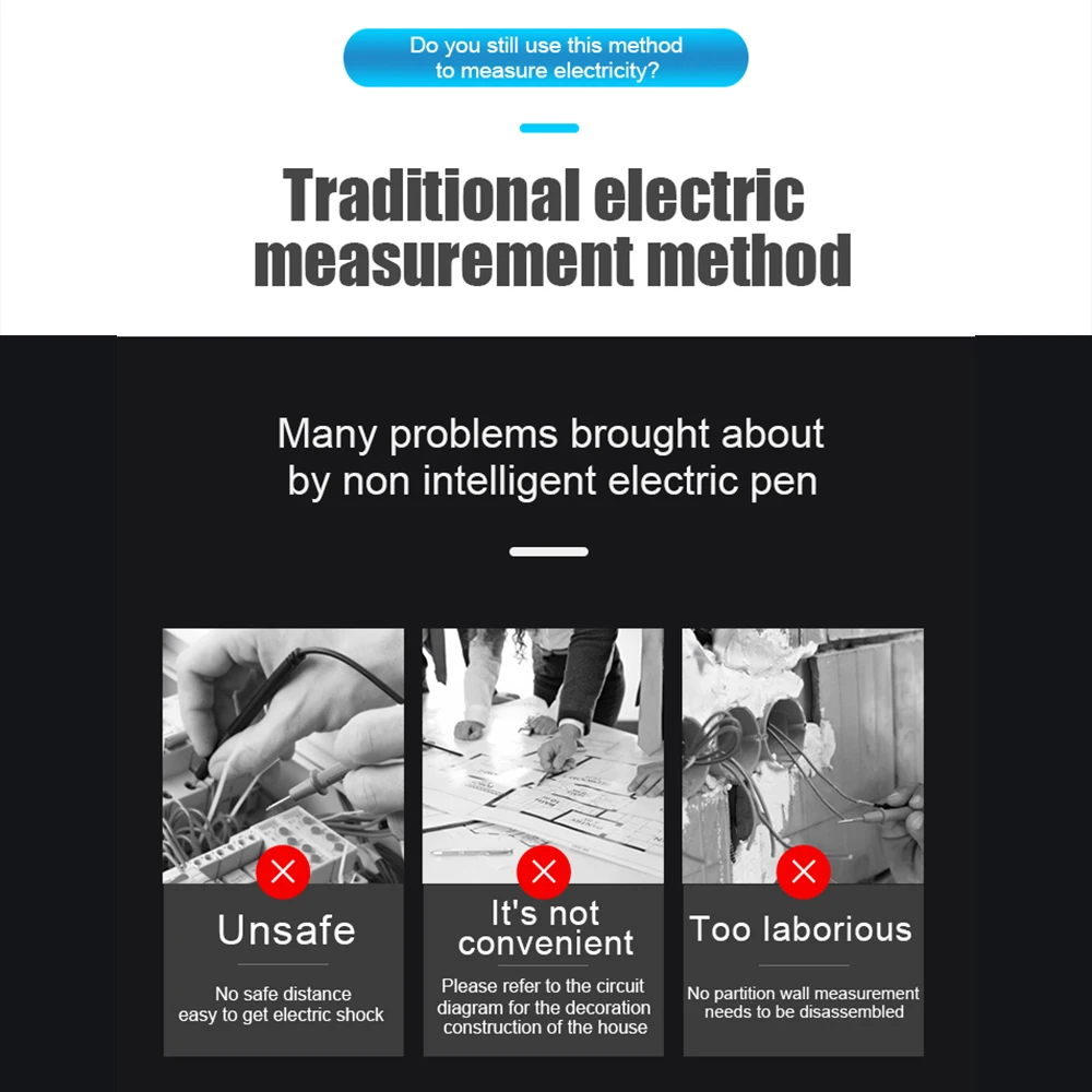 Различие между нулевым/огненным проводом: Поместите тестовую ручку возле провода или вставьте ее в носок, выделите нулевой/огнеупорный провод в соответствии с силой индукционного сигнала.