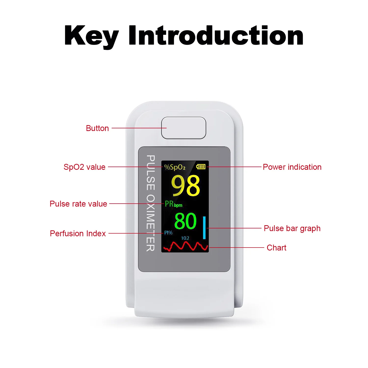 Легко читать:Поддержка SPO2, pulse и bar chart, вы можете просматривать свой результат очень четко с ЖК-дисплеем.