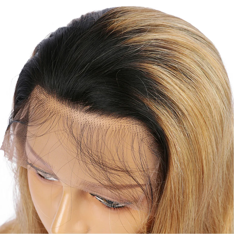1B 27 эффектом деграде (переход от темного к человеческие волосы парик бразильский прямые Мёд блондинка Синтетические волосы на кружеве парик 200 Плотность 13x6 Цветной Синтетические волосы на кружеве парики из натуральных волос