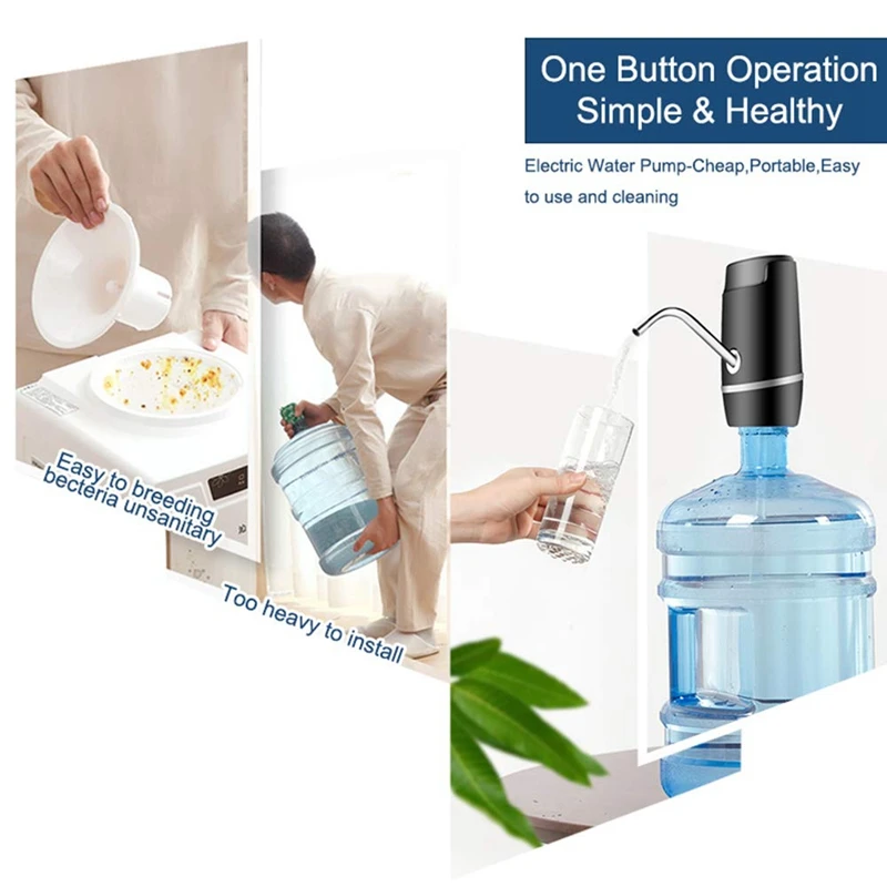 [USB Перезаряжаемый диспенсер для воды]: Встроенный перезаряжаемый аккумулятор емкостью 1200 мА · ч, после полной зарядки может использоваться в течение 30-35 дней или 4-6 бутылок бутылки с водой емкостью 5 галлонов, не нужно заряжать каждый день. Идеально подходит для дома, офиса, пикников на открытом воздухе, школы, фабрики, пляжа, кемпинга, барбекю.