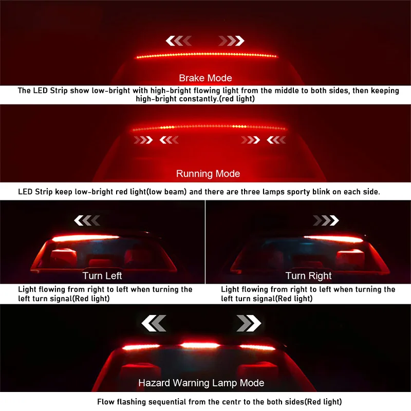1 шт., автомобильный тормозной светильник, светильник с поворотным сигналом, DRL, многомодовый, высоко-позиционный задний светильник, автомобильный тормозной светильник, универсальный, 12 В, 90 см