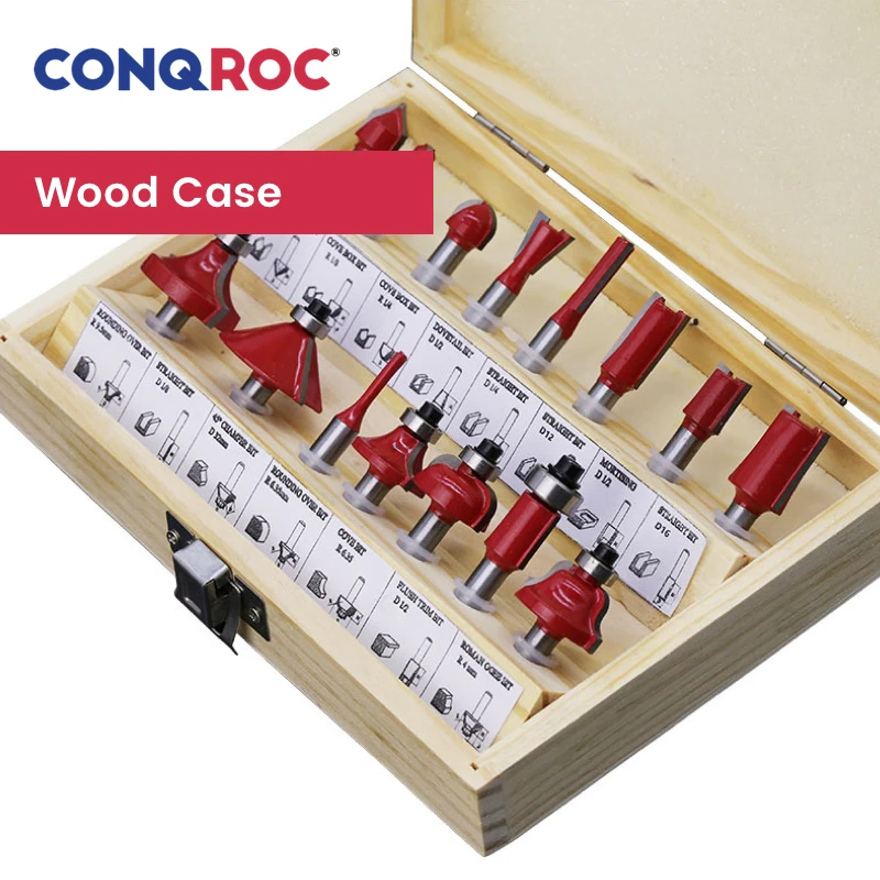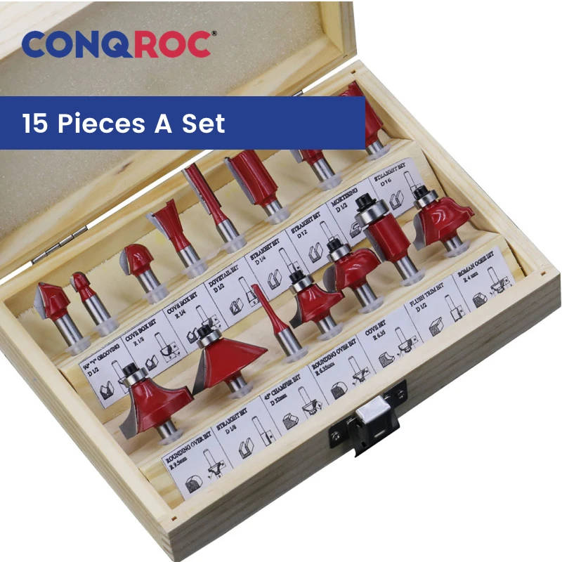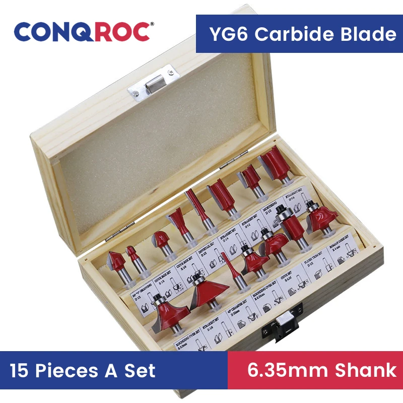 15 шт. фрезы Набор 1/4 "6,35 мм хвостовик Дерево Фрезы комплект с деревянным корпусом