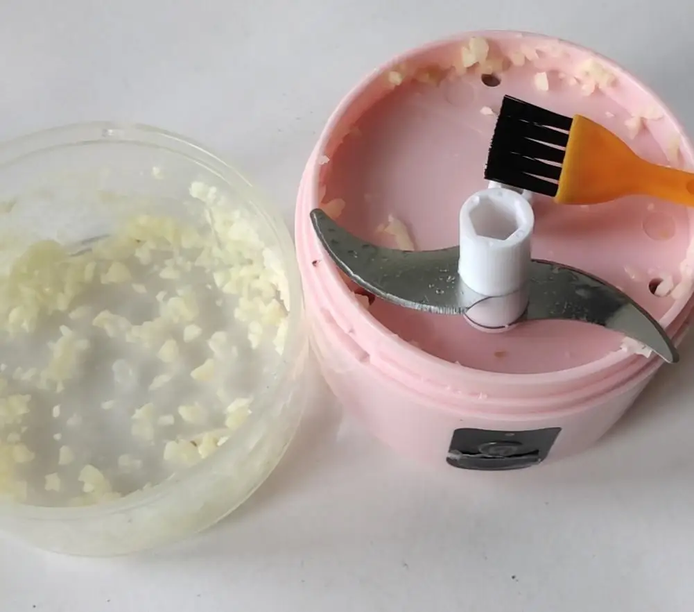 Легко чистить: корпус чашки и крышка чашки измельчителя для пищевых продуктов отстегиваются и оснащены чистящей щеткой. После резки пищи вы можете удалить лезвие и краску лезвия и чашки прямо с водой.