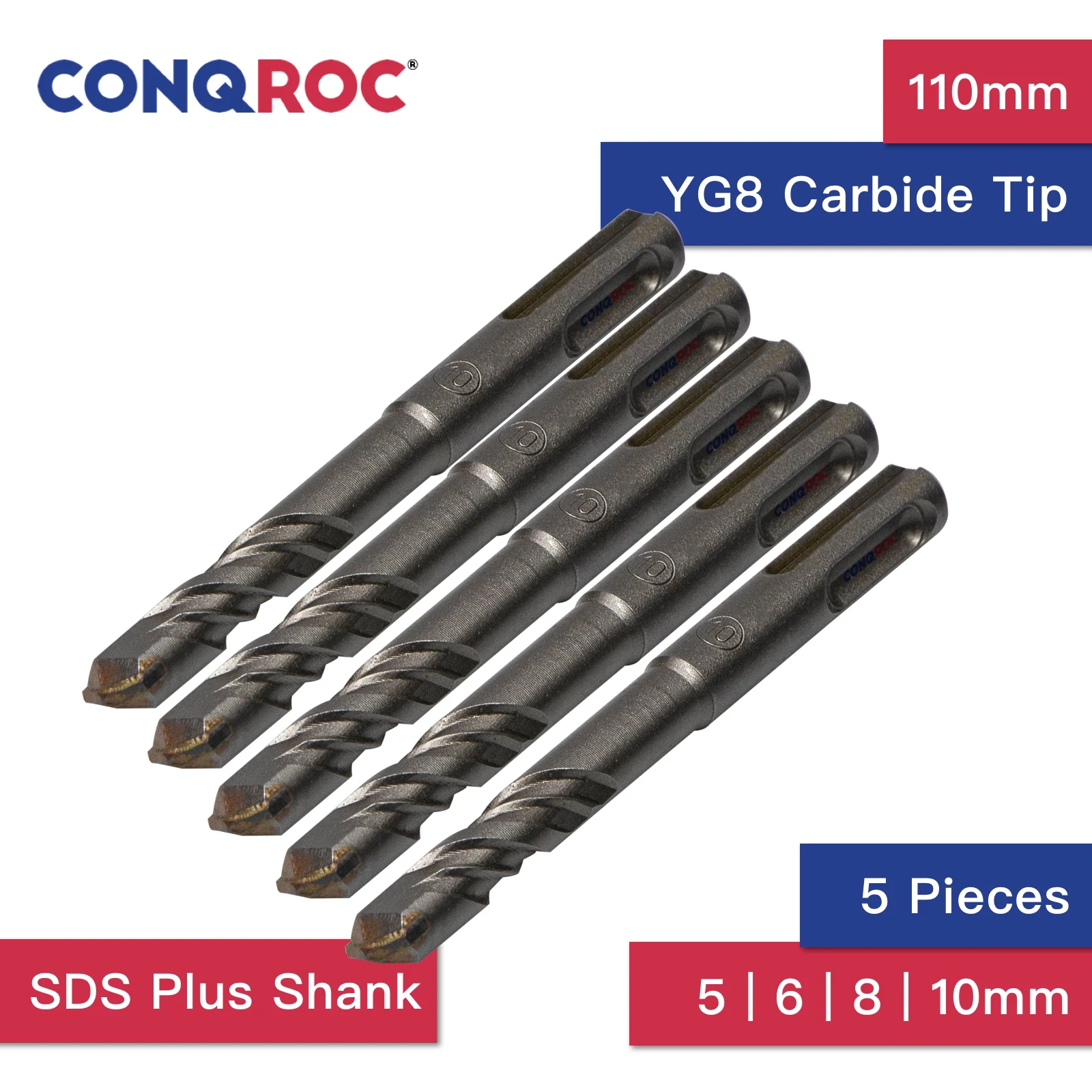 -5 шт. одного размера SDS Plus хвостовик сверла (стандартный, Твердосплавный Наконечник, 5 мм | 6 мм | 8 мм | 10 мм)