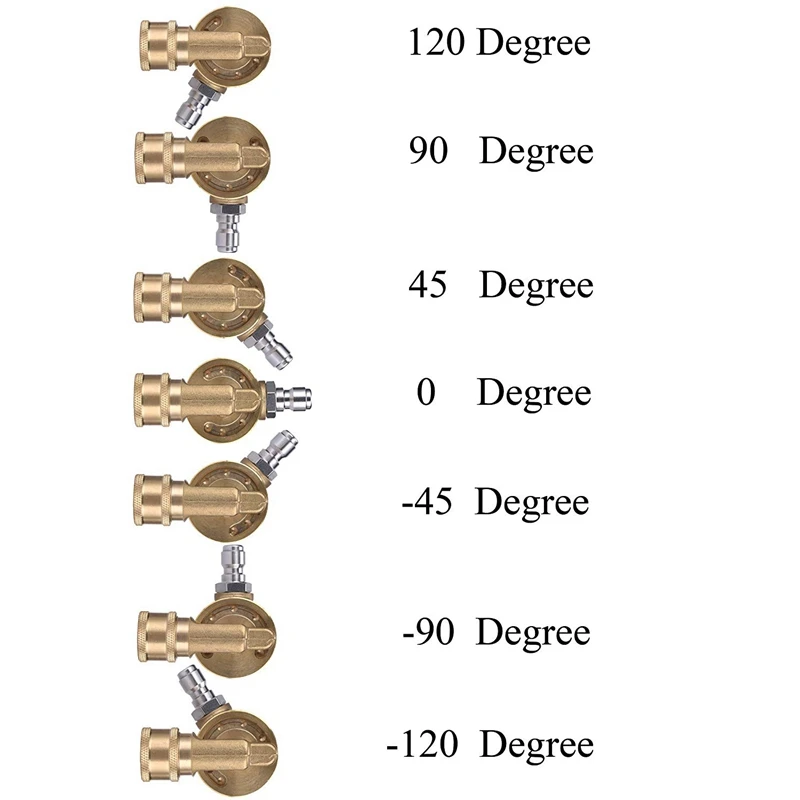 Угловая Поворотная муфта регулирует 240 градусов для 7 различных углов очистки. Он может вращаться на 45 градусов, 90 градусов и 120 градусов. Чтобы получить области, которые трудно достичь, отлично подходят для достижения ходовой части вашего автомобиля и автомобильных дисков, а также отлично подходят для очистки желоба.