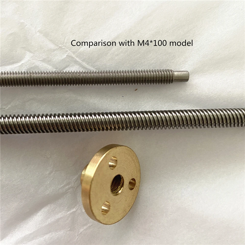 T5 расстояние резьбы 4 мм, M4 = 0,7 мм Особенности: 1... Быстрая направляющая 4 мм! 304 вал из нержавеющей стали, быстрая резьба, с медным фланцем. (Моторы моделей M4 * 100 и M4 * 55 у свинца 0,7 мм.) 2... Применение: подъемная платформа, конвейерная лента, в качестве направляющей и т. Д. Таблица спецификаций ------------