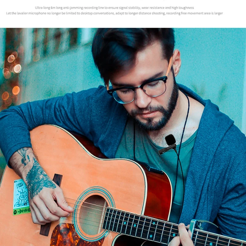 Сверхдлинный кабель для защиты от помех: 6 метров длинный кабель для защиты от помех, стабильный сигнал, износостойкий высокопрочный кабель для защиты окружающей среды, так что микрофон lavalier больше не ограничен диалоге на рабочем столе, подходит для съемки на более дальнем расстоянии, записи бесплатно, движущаяся площадь больше.
