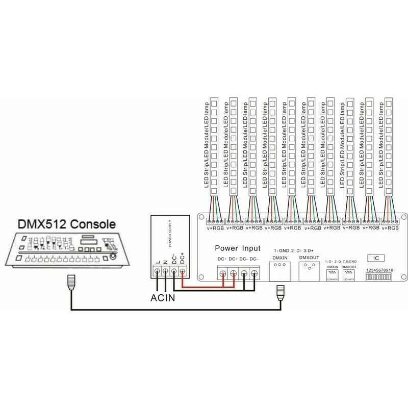 Есть 1 ~ 4 выходных канала; Каждый канал может достичь 256 уровней управления. Этот постоянный декодер используется, когда DMX512 контрольное оборудование контролирует общее светодиодный освещение