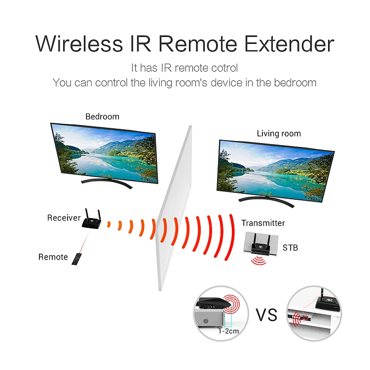 Control what you watch from a more preferable location. Whether it be in your kitchen,dining room or backyard,just point the remote control at the receiver and instantly stream an HD signal to a TV in another room - wirelessly in HD 1080P.No extra cable box is needed.