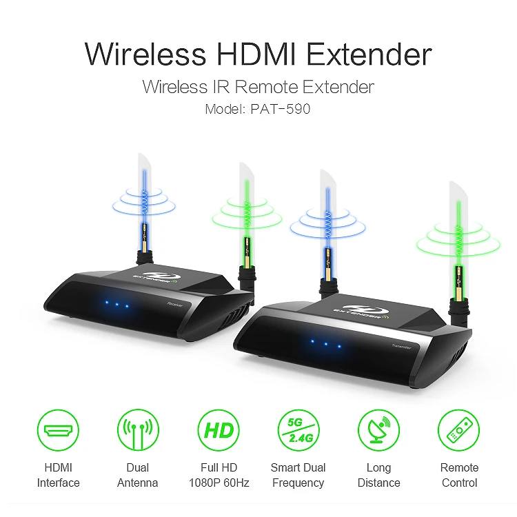 The PAT-590 Wireless HDMI Extender can transmit the signal from transmitter to receiver in different room at receiver. You can enjoy freely wireless HD AV sharing data and Hi-Fi o and video effect.it has played a major role in transforming whole-house o, video and home theater.Ultra-long Transmission Distance