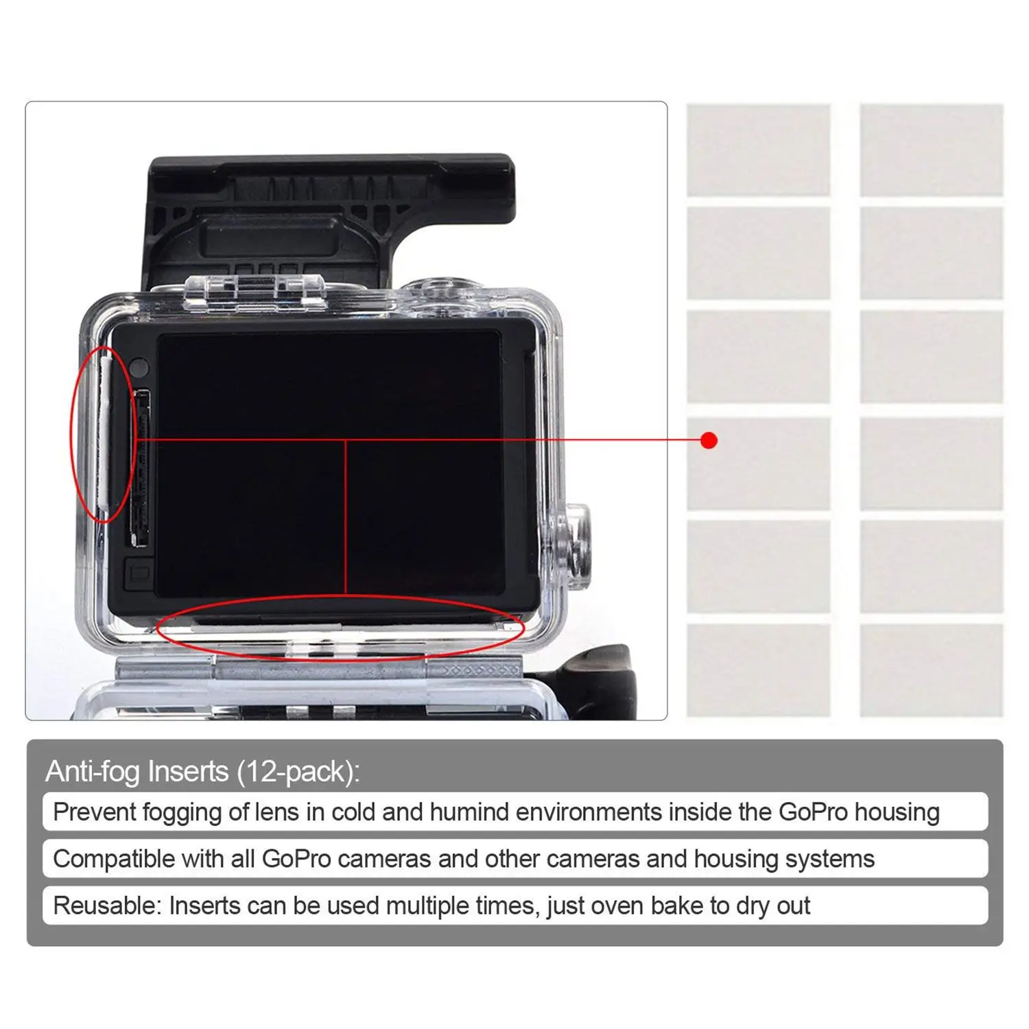 Предотвращает запотевание объектива в холодной и гуминдовой среде внутри корпуса GoPro