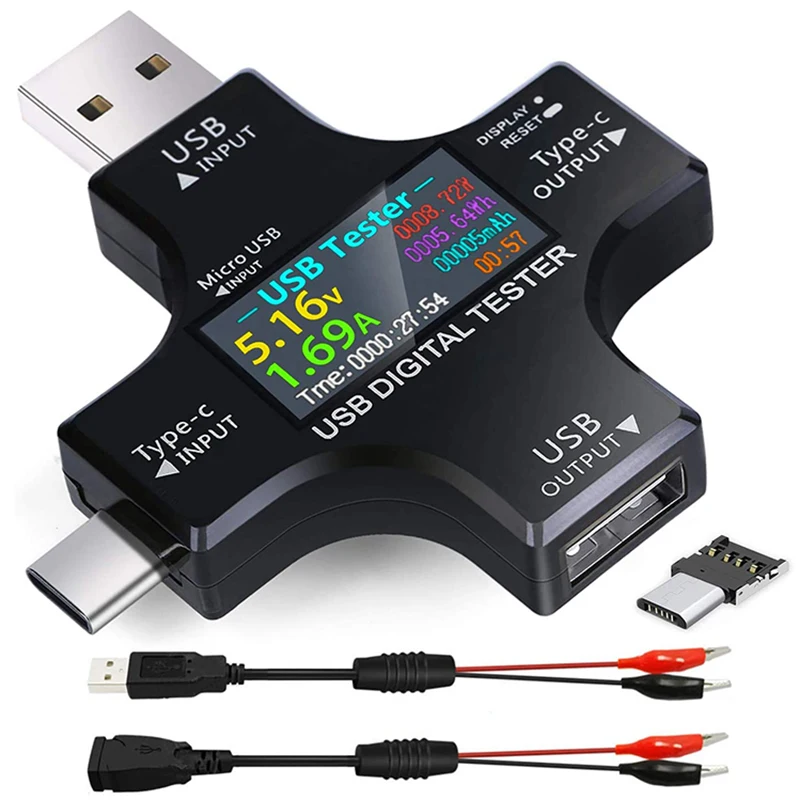 [Новейший Модернизированный измеритель мощности USB C]: Тестер мультиметра может контролировать напряжение, ток, емкость, электрическое количество, мощность, температуру, сопротивление, время зарядки и другие данные о портах USB или type C. Обязательный гаджет проверяет производительность зарядки (скорость и качество зарядки) Выходная стена/автомобильное/Солнечное зарядное устройство s и usb-кабели для зарядки. Также можно использовать для поиска самого высокого тока беспроводного зарядного устройства и испытательной мощности и электрической энергии банка питания.