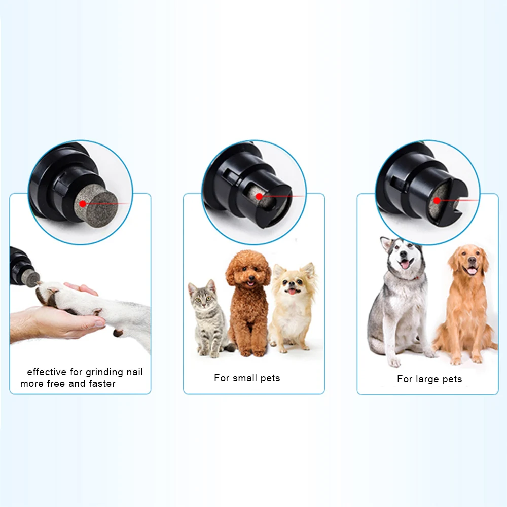 3 размера портов и безболезненных: триммер для ногтей для собак имеет три размера портов, которые подходят для всех домашних животных. Маленький порт для маленьких домашних животных, средний порт для крупных домашних животных. Большой порт, было бы более эффективным для шлифования ногтей более бесплатно и быстрее.