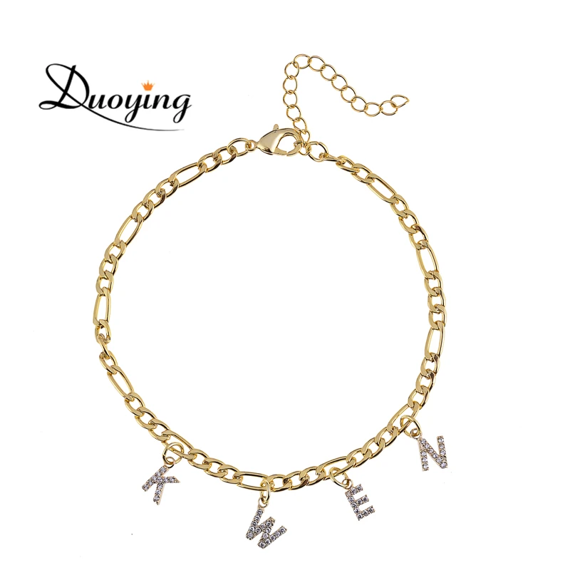 DIY циркон браслет на ногу с буквами Маленькие буквы кулон имя лодыжки Фигаро с украшением в виде цепочки для девочек подарок
