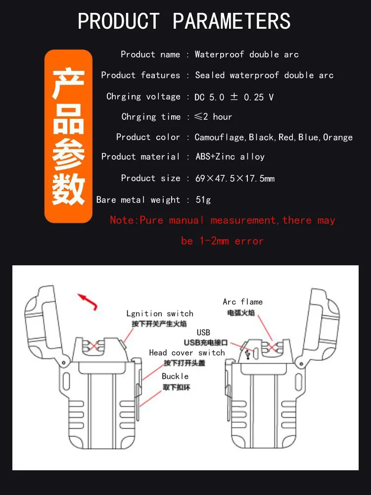 Водонепроницаемая двойная дуга, крутая и стильная, горит за одну секунду