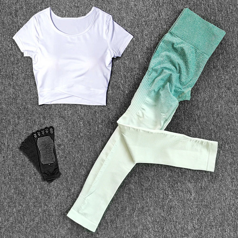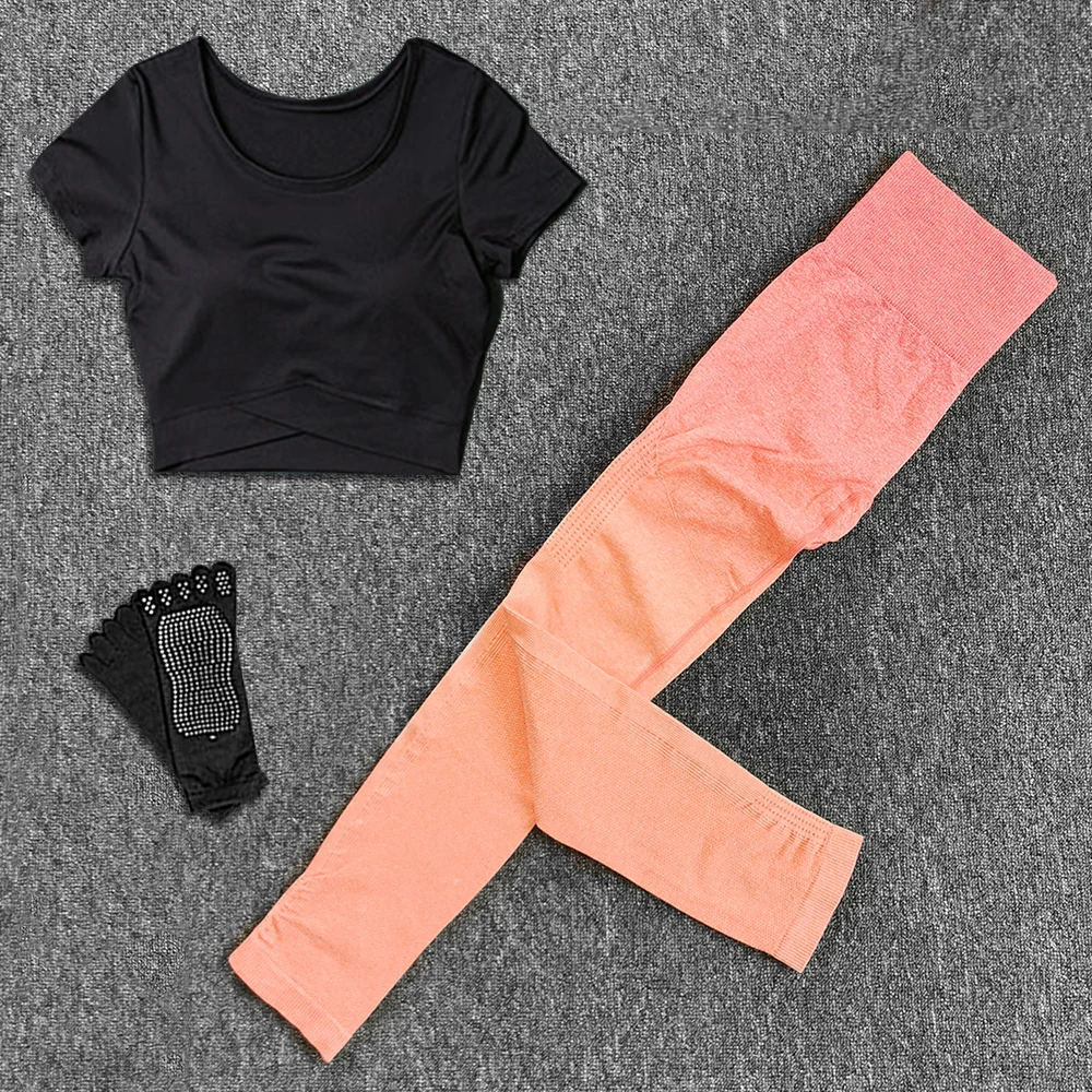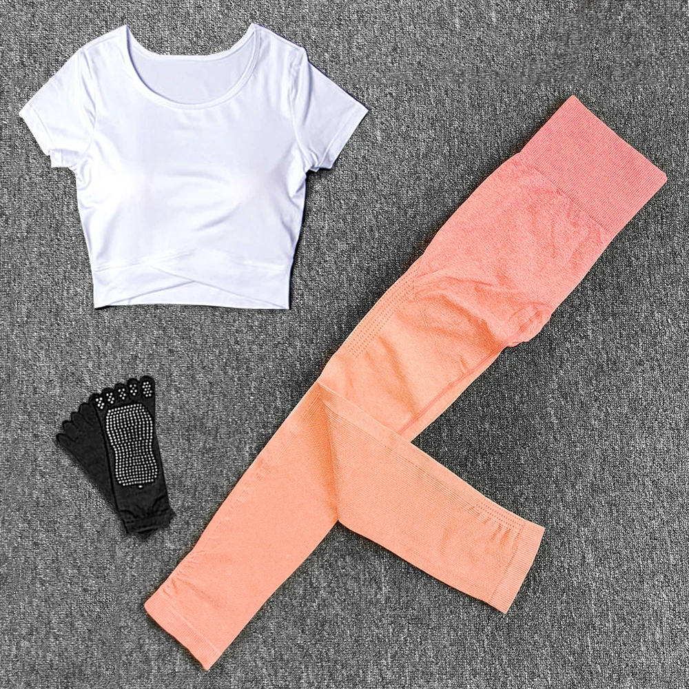 Женский бесшовный комплект для йоги, комплект из 2 предметов, спортивные штаны, спортивный комплект, одежда для фитнеса, нагрудный коврик, топ, спортивная одежда для бега, леггинсы, костюмы