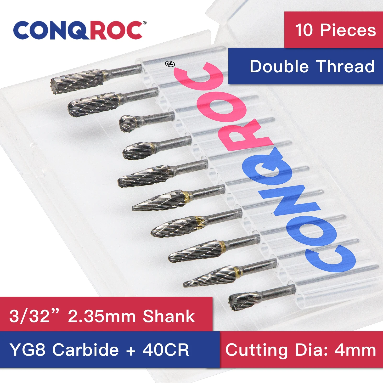 -Форма: цилиндрическая, шаровая, коническая, Заостренное дерево, перевернутый конус, круглое дерево, овальная, пламя, и т. Д. -Диаметр хвостовика: 2,35 мм -Диаметр резки: 4 мм -Тип хвостовика: прямой -Резьба: двойной -Материал: Карбид вольфрама сталь YG8 и 40CR
