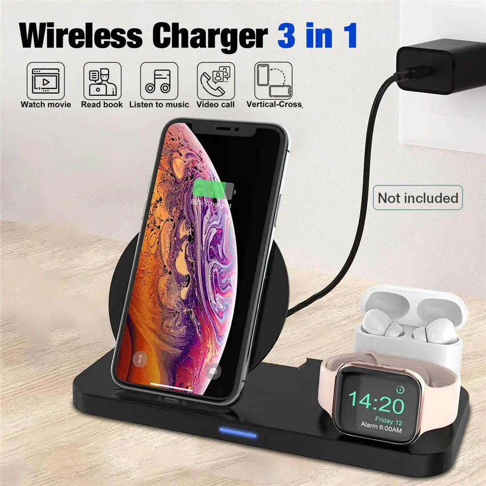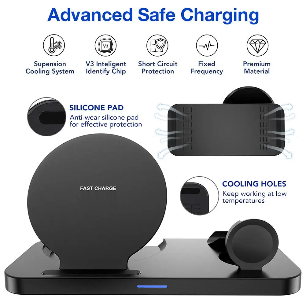 1 、 многофункциональное Беспроводное зарядное устройство: беспроводное зарядное устройство использует новейшую Qi беспроводной технологии, и он поддерживает одновременную зарядку мобильных телефонов, часы и устройств для airpods в одно и то же время. И беспроводное зарядное устройство подходит для наручных часов IWatch серии 5/ 4/3/ 2, для 1, и беспроводное зарядное устройство подходит для AirPods Pro, для 2, для 1, подходит для iPhone, 11, 11 Pro, для MacBook 11 Pro Max, для iPhone X, для XS, для XS Макс, Для iPhone 8, iPhone 8 Plus, подходит для Samsung S9, для S8, для Note 8, для S7 Edge и так далее, поддерживающим беспроводную зарядку Qi.1 * Инструкция